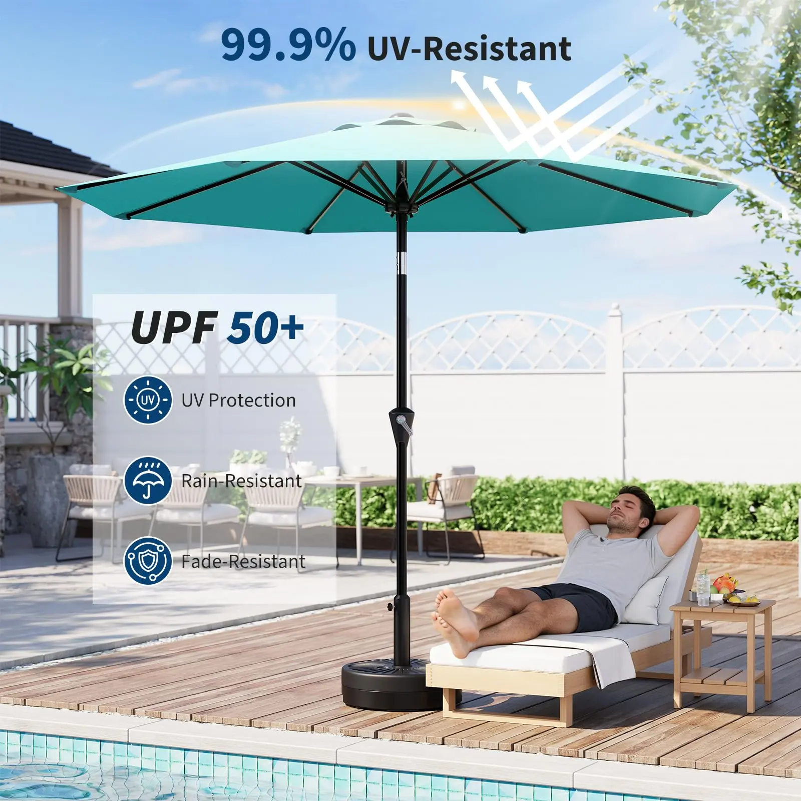 ·【Enhanced Wind-Resistant Ventilation】Designed with a vented canopy, our pool umbrella allows airflow to reduce wind pressure, increasing overall stability while keeping you cool on hot summer days.