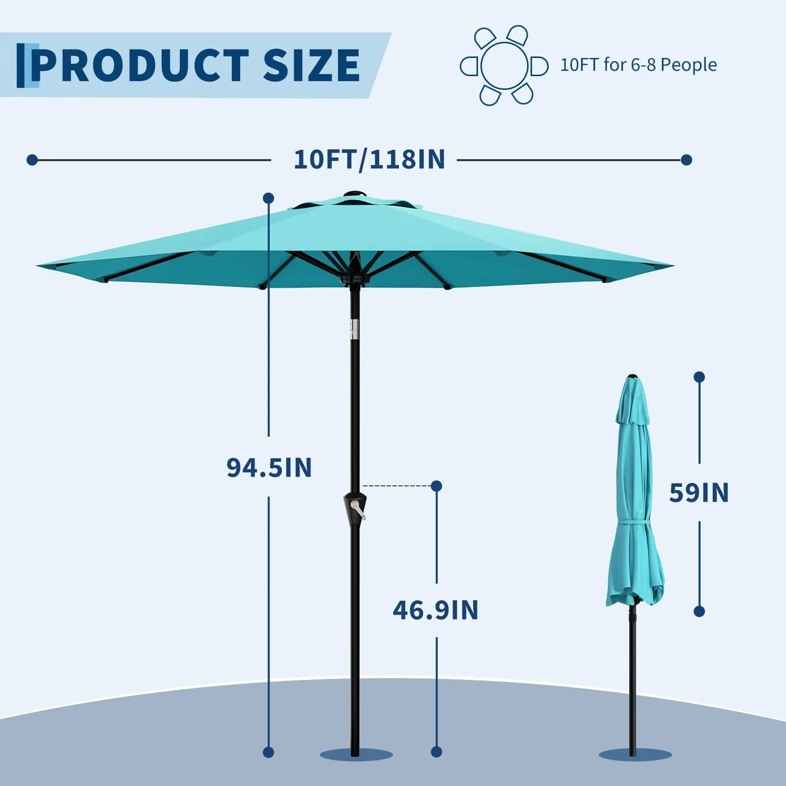 ·【Premium UV-Resistant & Water-Resistant Fabric】Crafted from high-quality polyester fabric, this 10 ft patio umbrella offers excellent UV protection and water resistance. Easy to wipe clean after rain, it maintains vibrant color and a fresh look for long-lasting outdoor use.