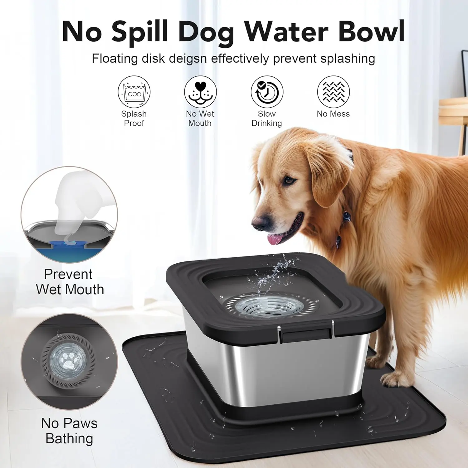 I have two St Bernard dogs who made such a mess while drinking their water. This bowl has been a lifesaver! Minimal water spillage and the rubber mat it comes with is a bonus. The stainless steel bowl is easy to clean and the locking lid is a great addition. Would definitely recommend this bowl!