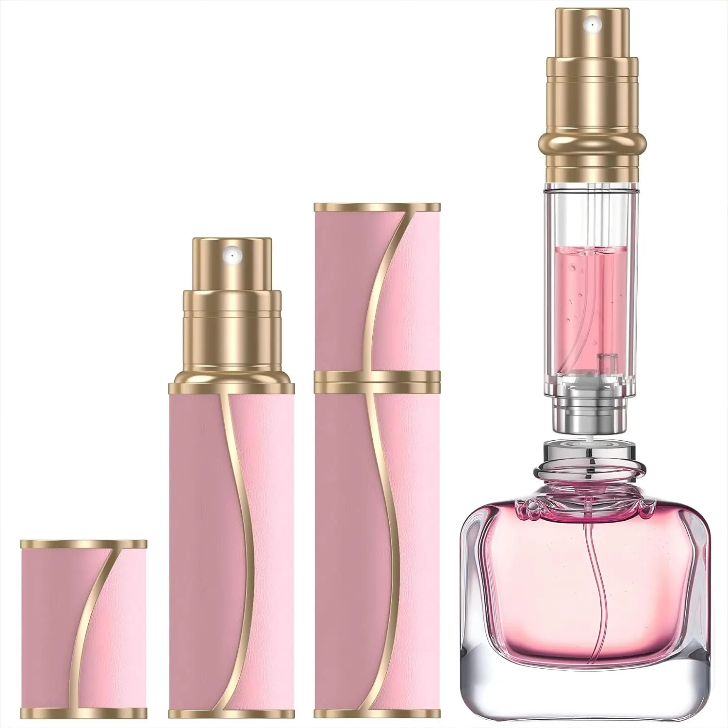 【 Shell & Elegant Design】The small perfume atomizer crafted with case for texture and quality, elevate your on-the-go experience with a touch of elegance. Compatibility with all brand perfume nozzles,package includes extra 2 specially designed adapters for even greater convenience.