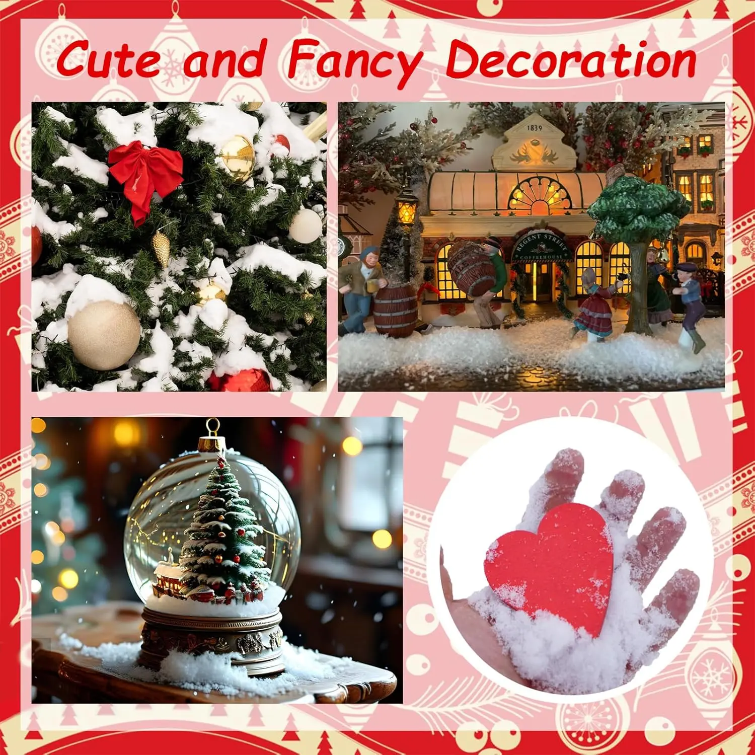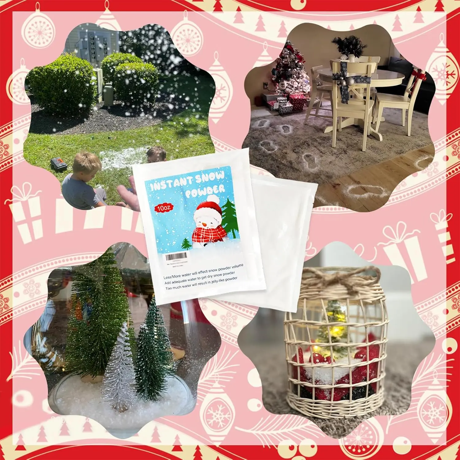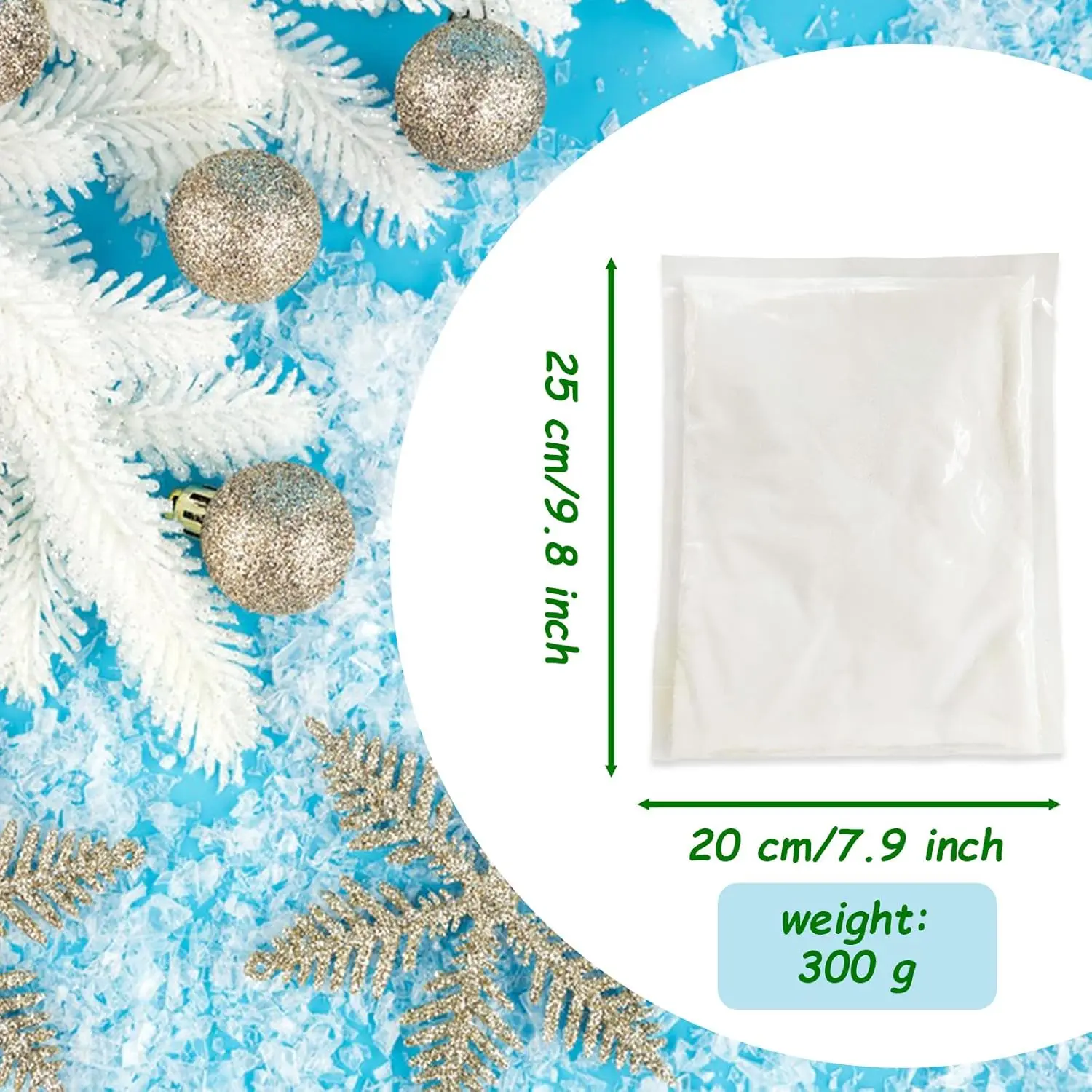 You'll obtain a 10 oz pack of powdered snow.Just add the appropriate amount of water to the seeds for more artificial snow crafting.Instant powdered snow can be utilized for all kinds of Christmas decorations.