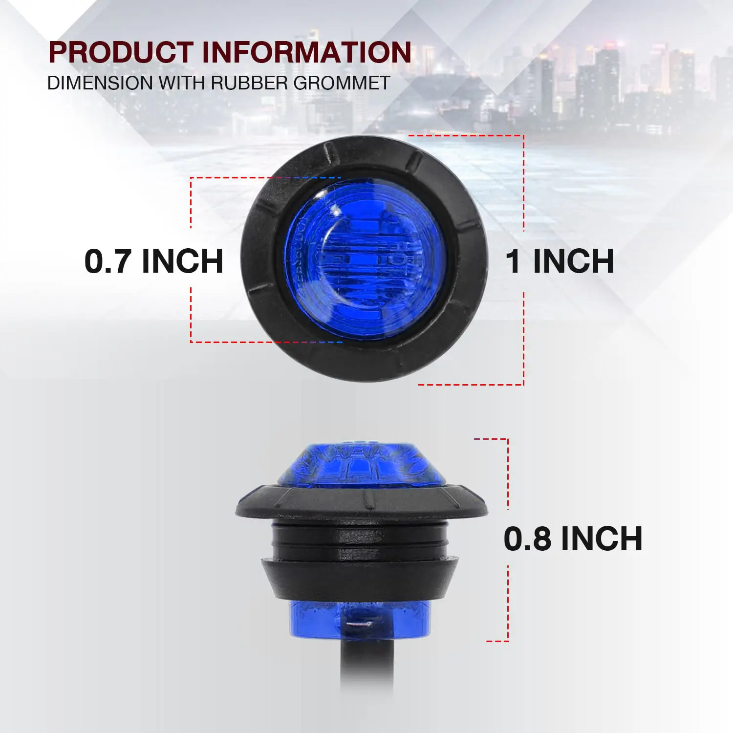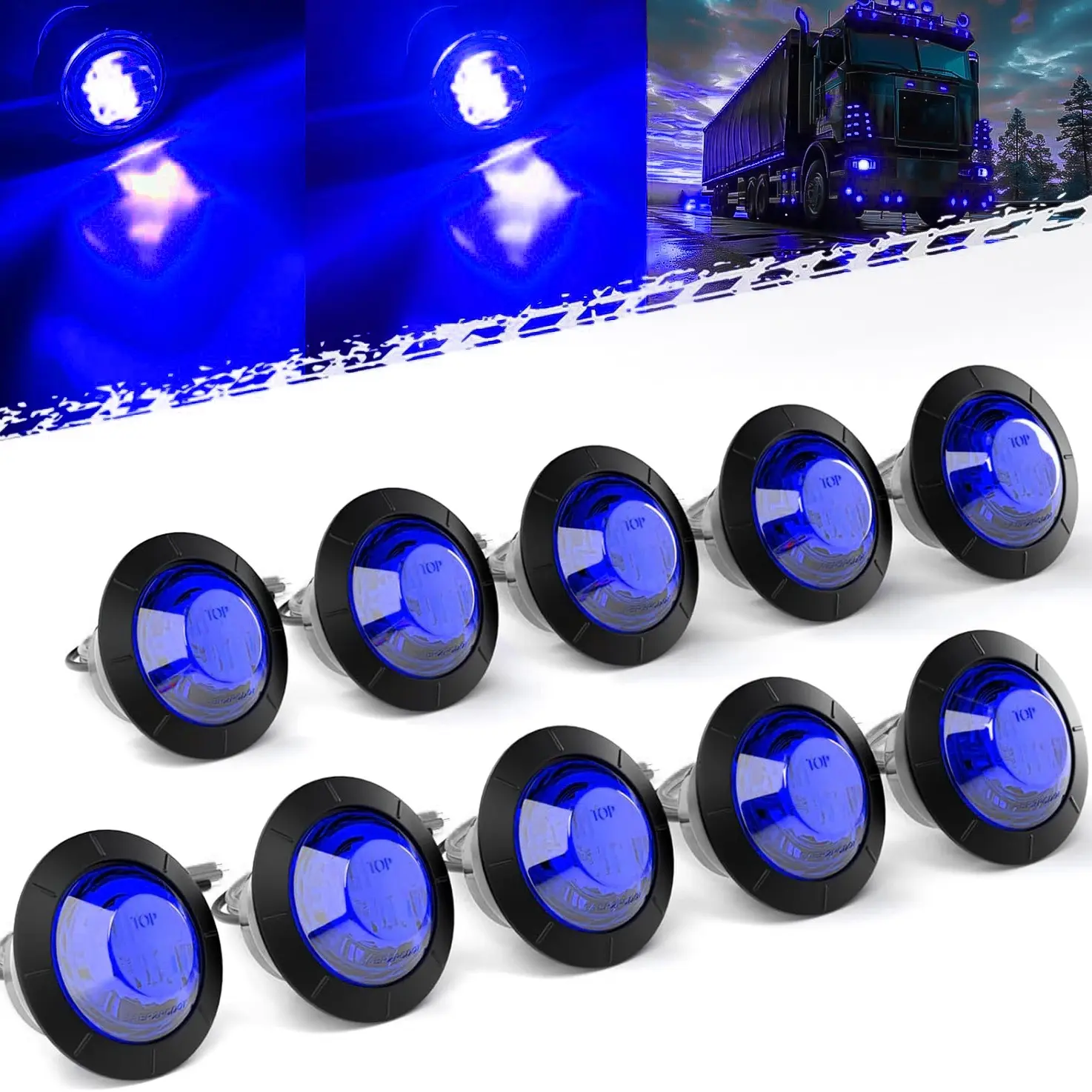 Elevate your vehicle's visibility with these 10 PCS 3/4 Inch Round Mini LED Clearance Lights. Perfect for trucks, RVs, cars, buses, trailers, vans, caravans, and boats. These lights feature a sleek blue color, enhancing safety during low light conditions. Each set includes 10 units, ensuring ample illumination for various applications.
