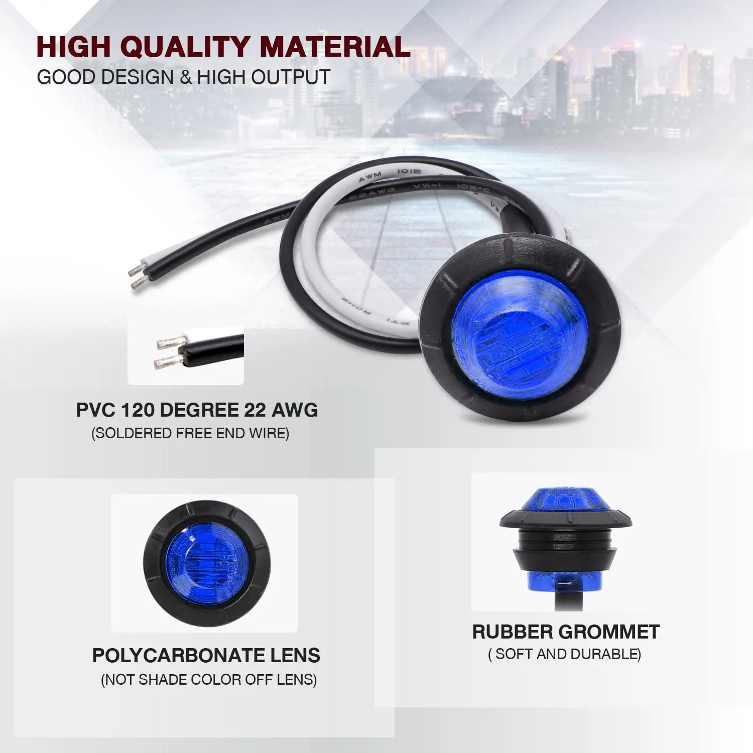 Super nice life sealed very well for any kind of environment. You desired to put them in the wiring is top notch the rubber basil that is around it is very durable thick highly recommend.