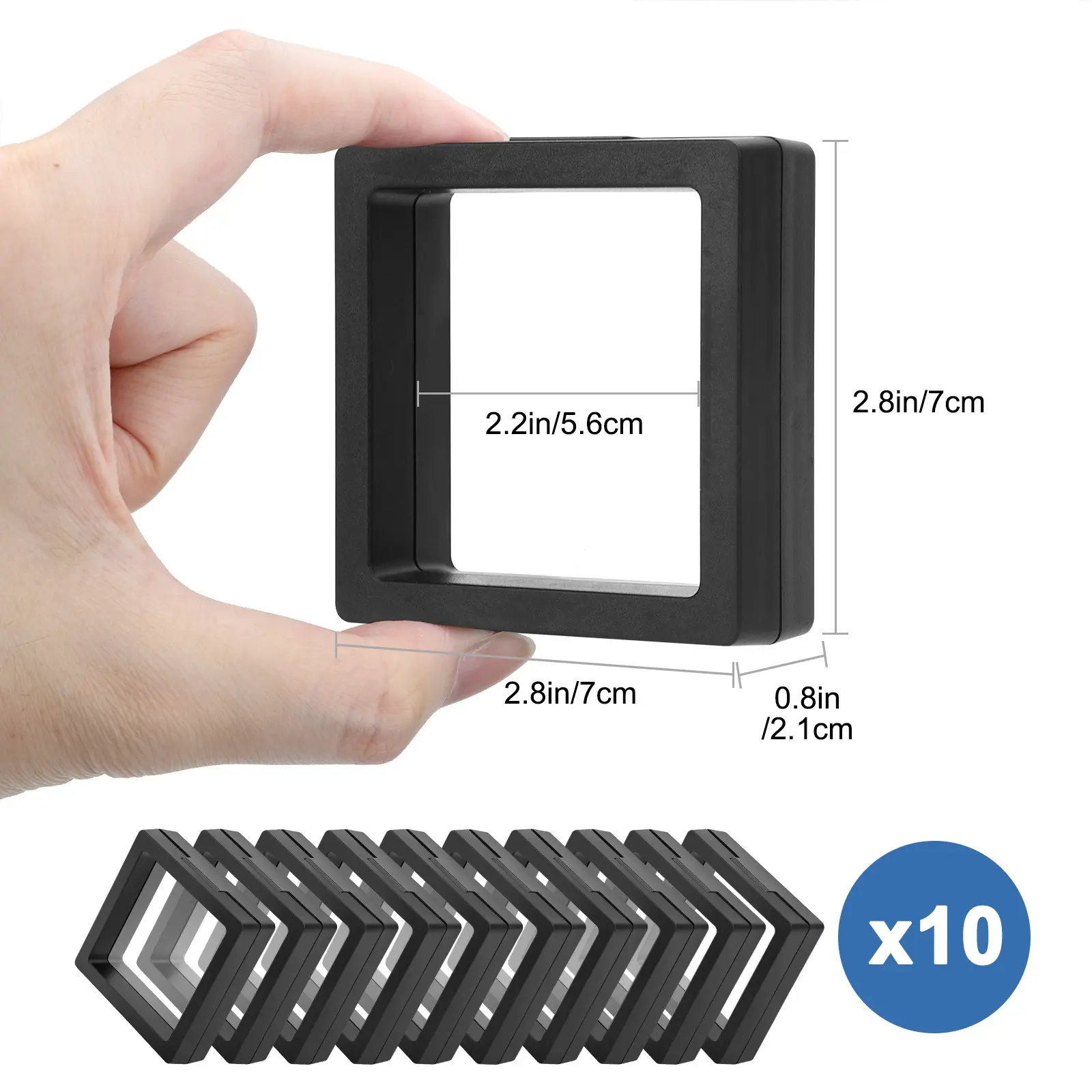 10 PCS 3D 2.8in Floating Coin Display Frame Stand Holder Case for Jewelry Rings