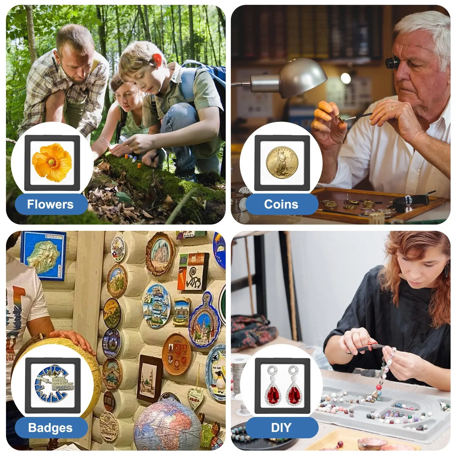 ✨ 10 PCS 3D 2.8in Floating Coin Display Frame Stand Holder Case for Jewelry Rings ✨