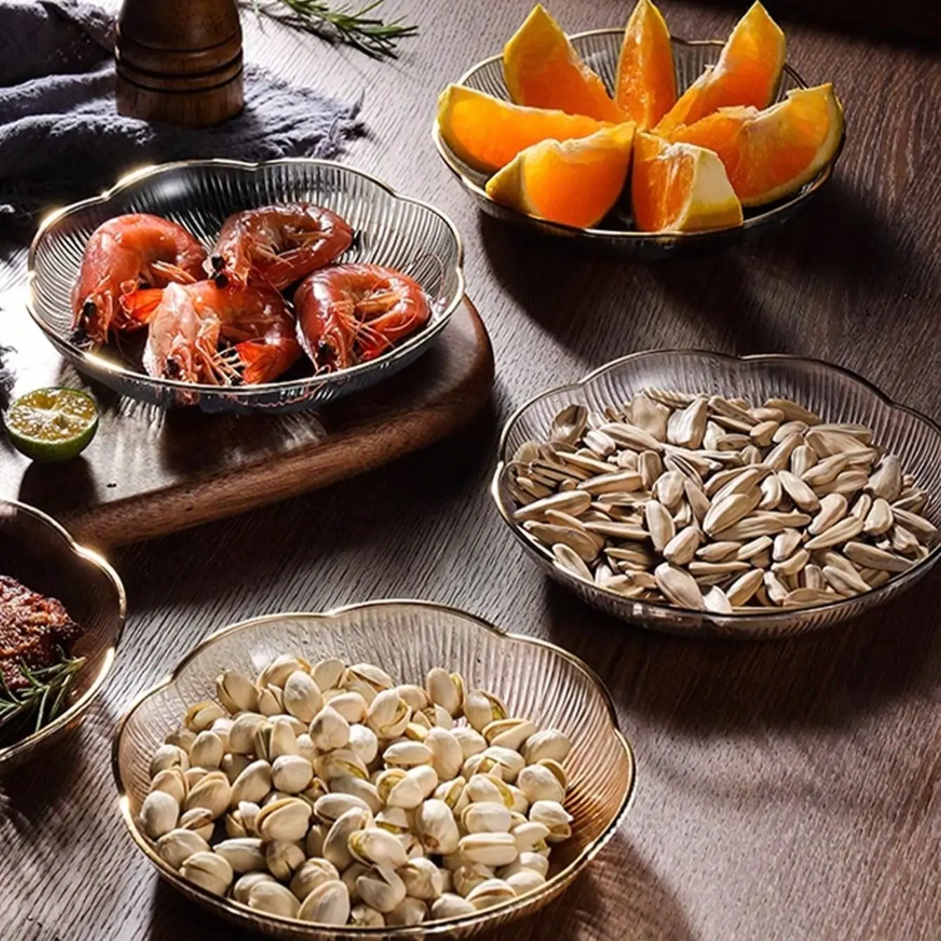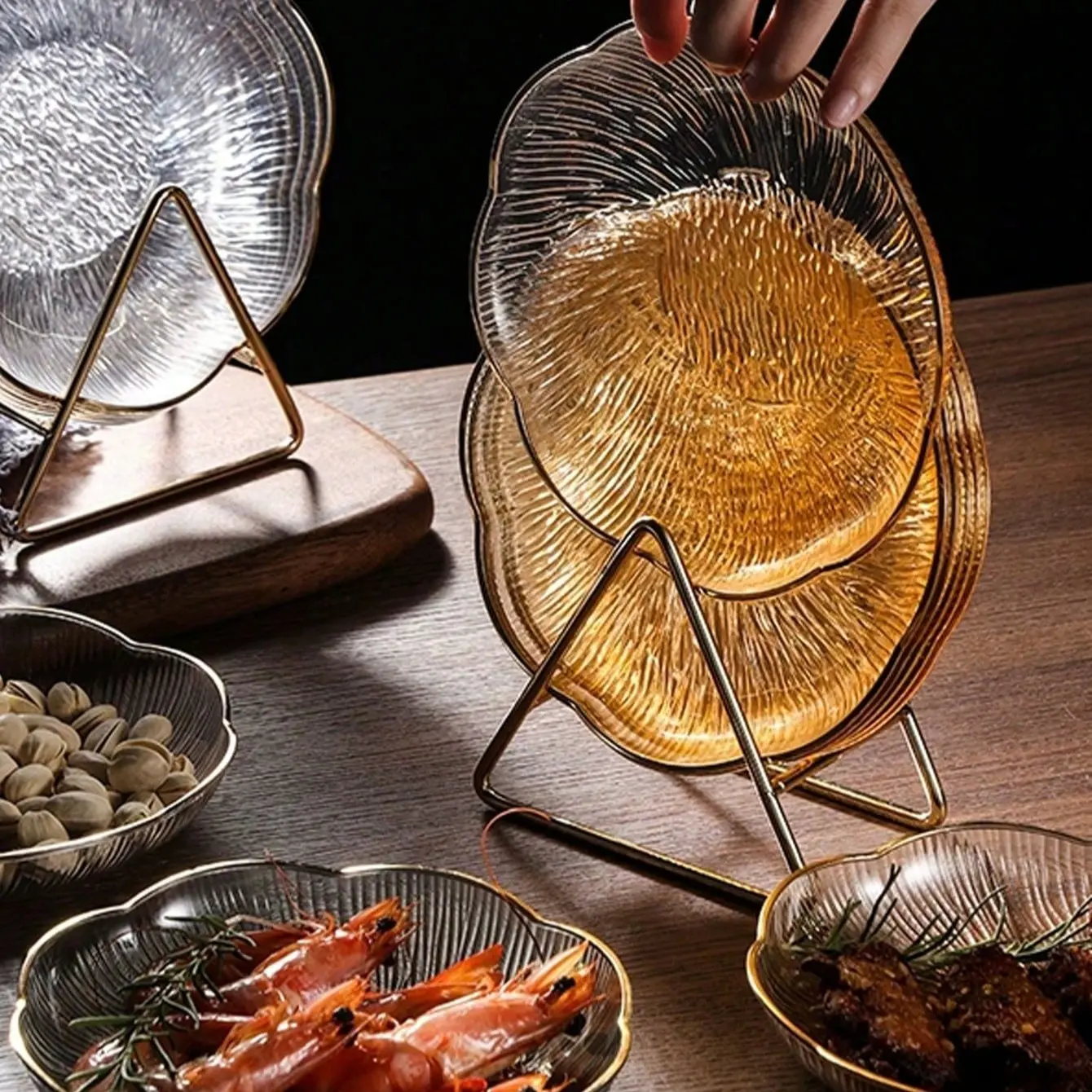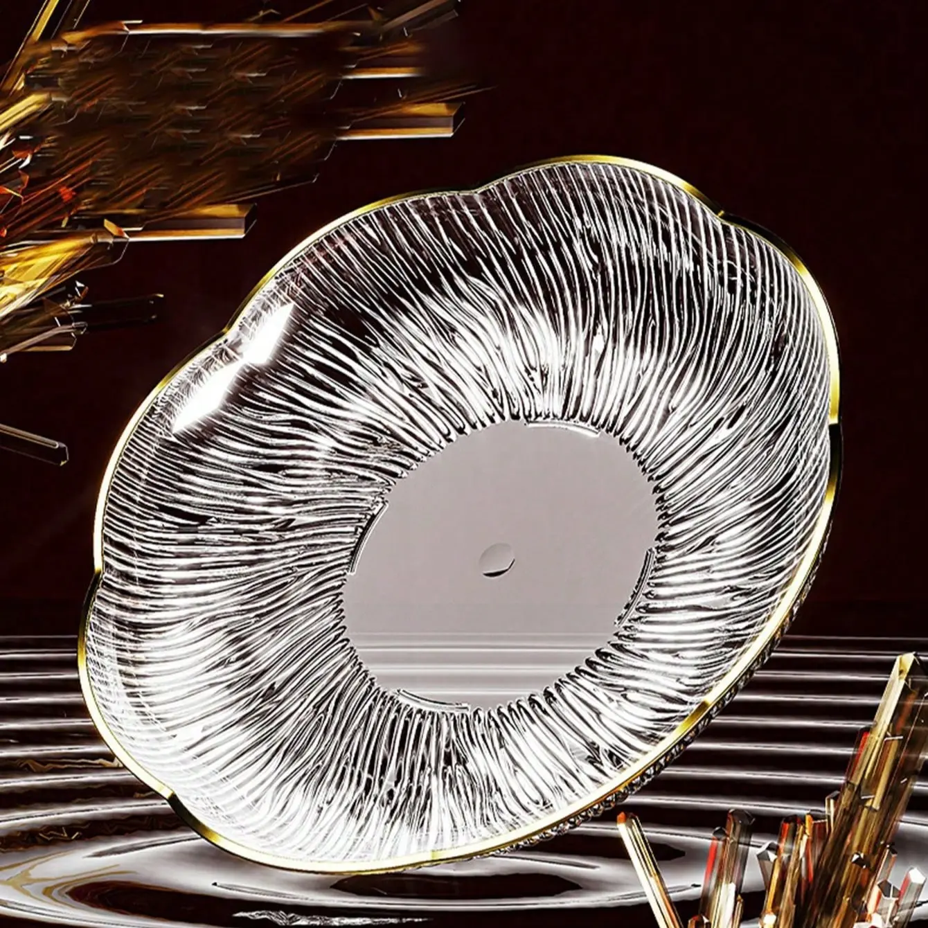Gold-Rimmed Water Ripple Plates, 10-Pack