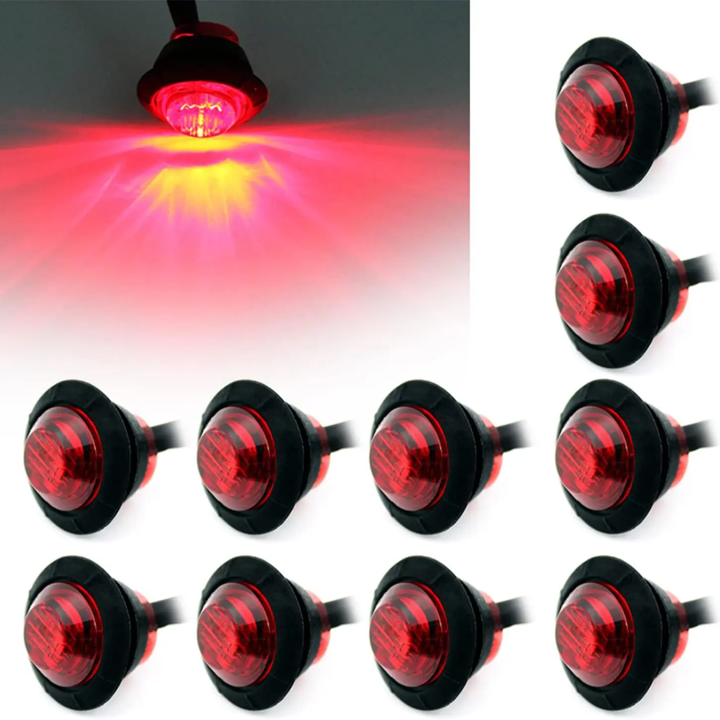 Equip your vehicle with these 10PCS LED Red Side Marker Lights! Perfect for trucks, pickups, caravans, and boats, these lights ensure clear visibility. Each light measures 3/4" bullet front rear, making them compact and efficient. Ideal for trailer clearance, these tail signal indicators mark your vehicle effectively. Stay visible on the road with these reliable side marker lights.