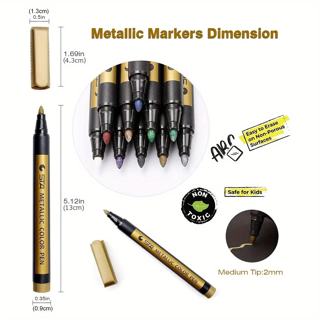 10pcs Metallic Marker Pens - Medium Tip Permanent Paint Markers for Scrapbooking, Crafts & DIY Projects