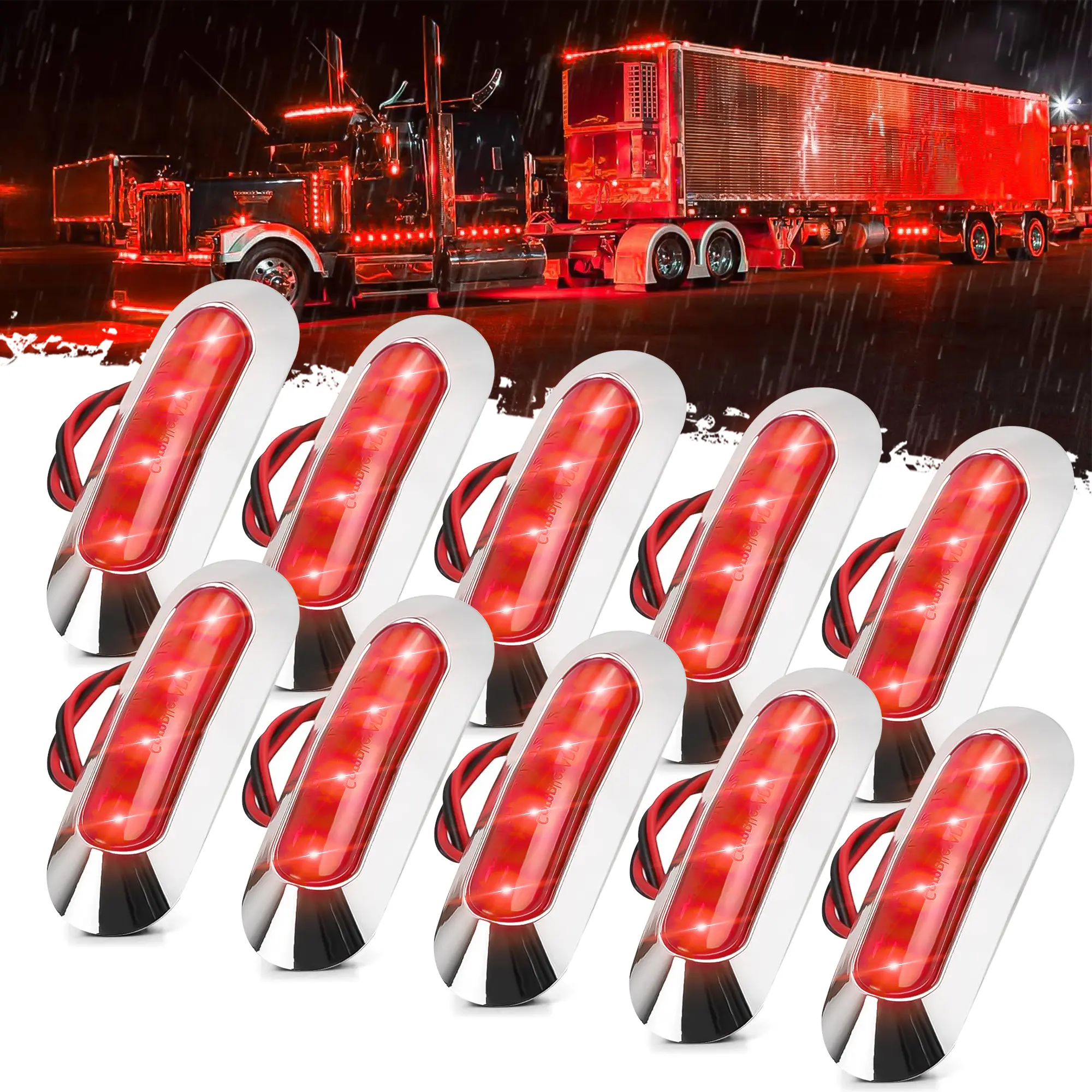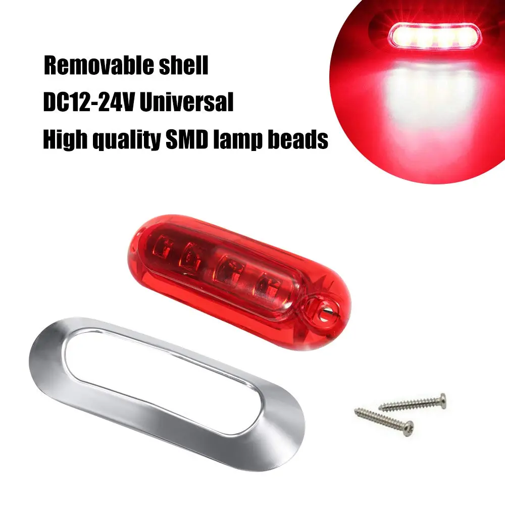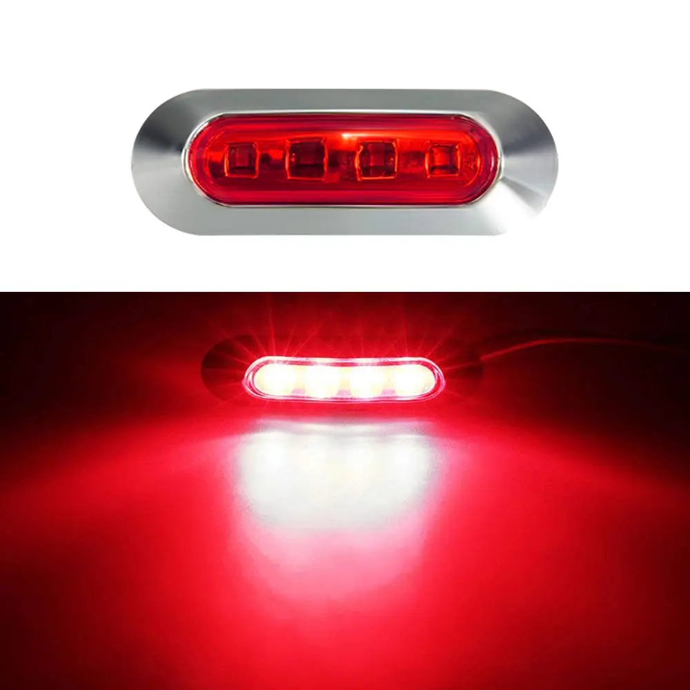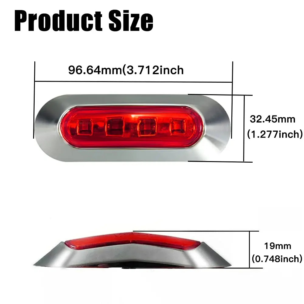 Elevate your vehicle's visibility with these 10PCS Red DC12V-24V 4 LED Side Marker Indicator Lights. Perfect for cars, buses, trucks, and more, these lights ensure clear signaling. The chrome bezel adds a touch of elegance. Ideal for auto interiors, front, rear, tail, and clearance applications. Enhance safety and style on any deck or trailer.