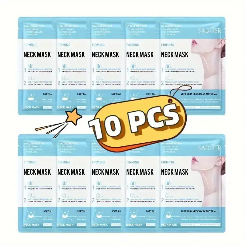 10pcs Sadoer Neck Masks with Glycerin & Hyaluronic Acid - Moisturizing Neck Care Sleek Packaging, Ideal Gift for Office Workers & Tech Users, Neck Mask for Face, Light Beige Hydration, Skincare Routine Hydrating Skincare, Skincare Enthusiasts,
