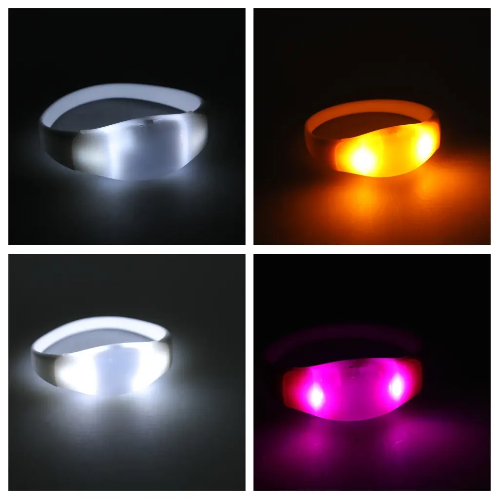 These bracelets come in assorted color, each crafted from silicone and plastic, which are sound activated glowing jewelry that can flashing lights according to the frequency of sound..
