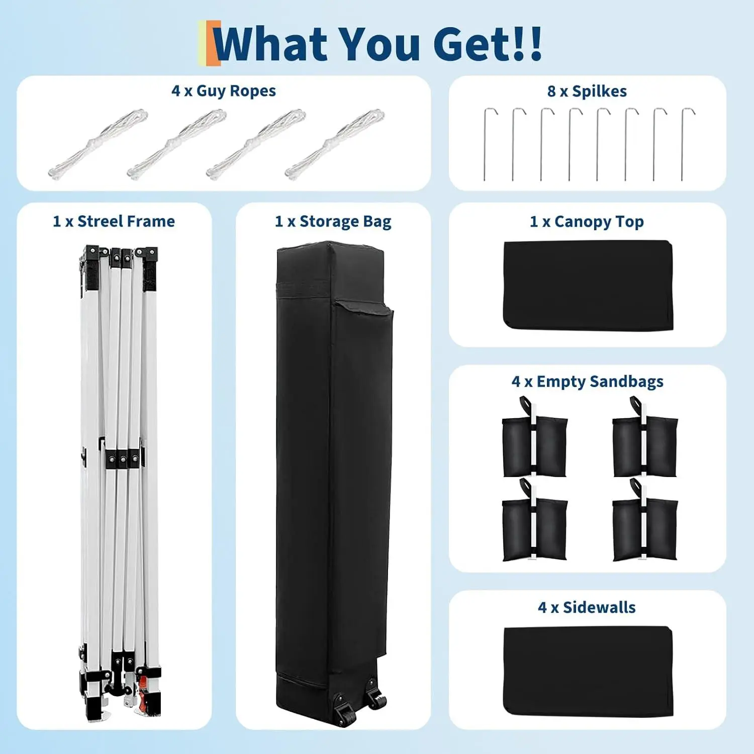 All-Weather Protection: Made of premium 210D Oxford fabric with a silver coating, our canopy tent provides UPF 50+ sun protection and water resistance. The 4 detachable sidewalls offer customized privacy and wind protection for any outdoor shelter needs