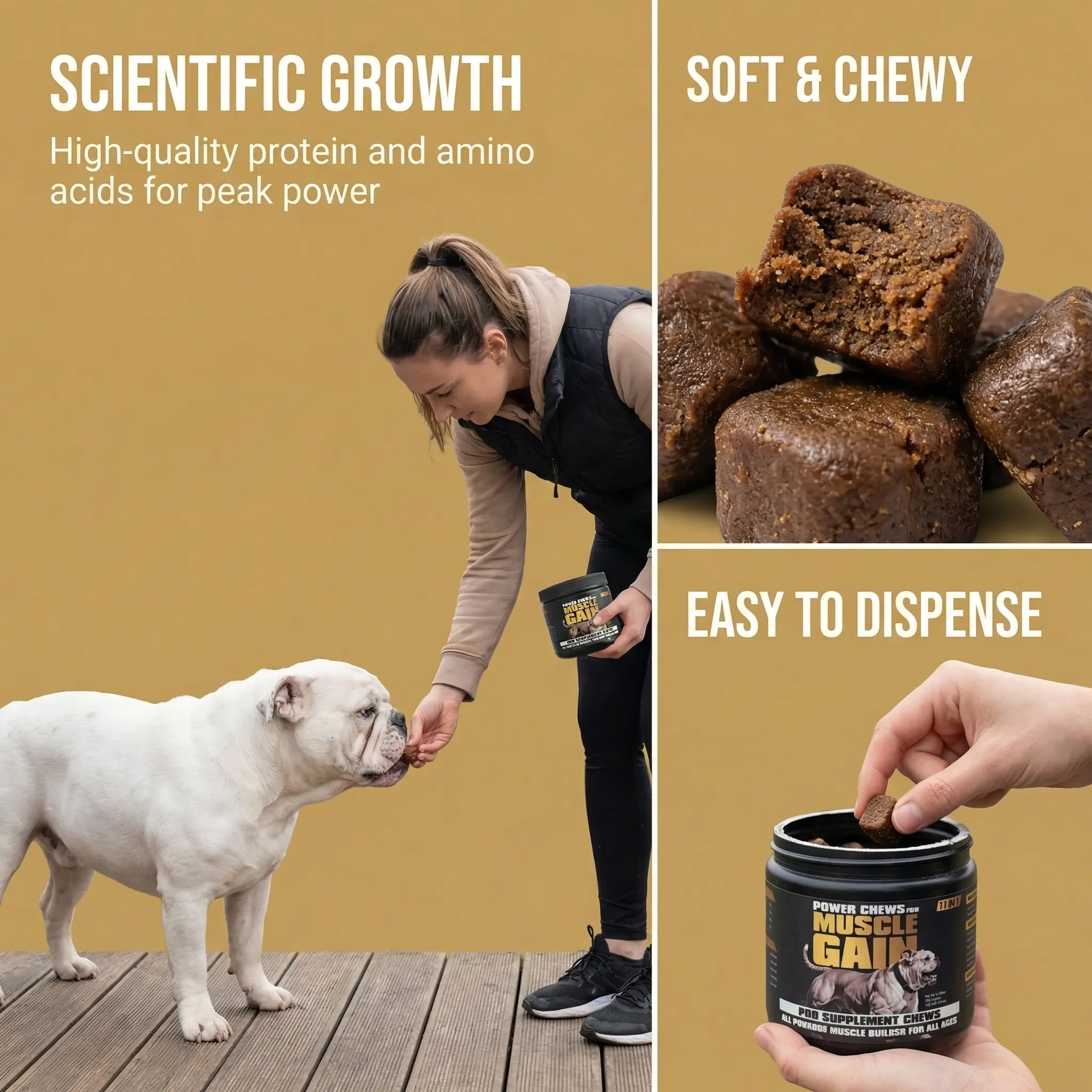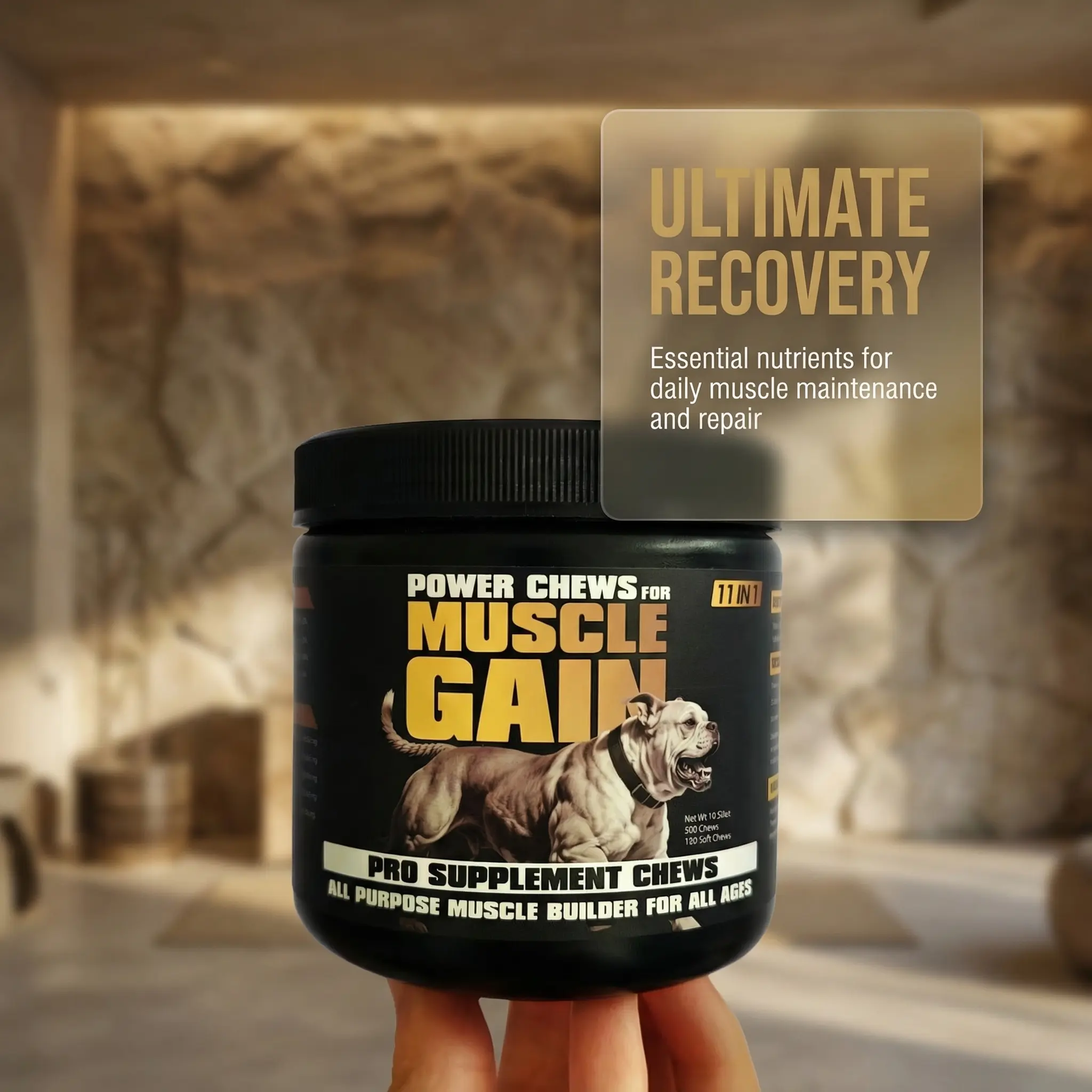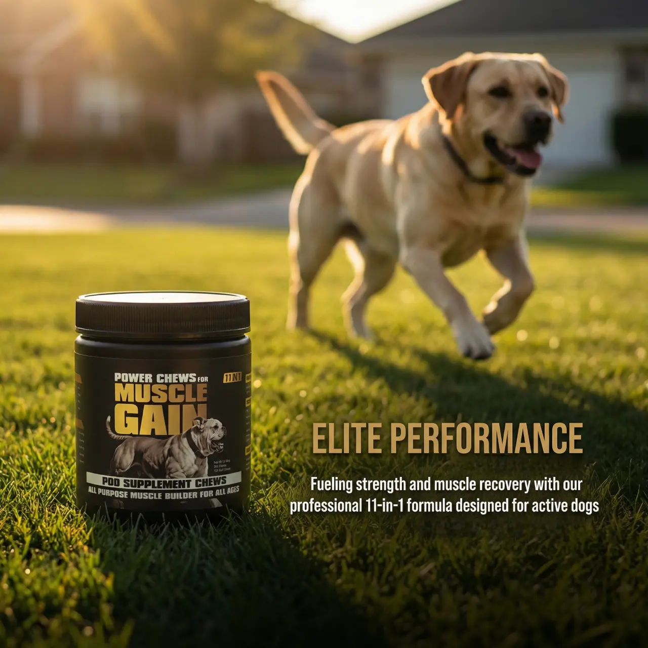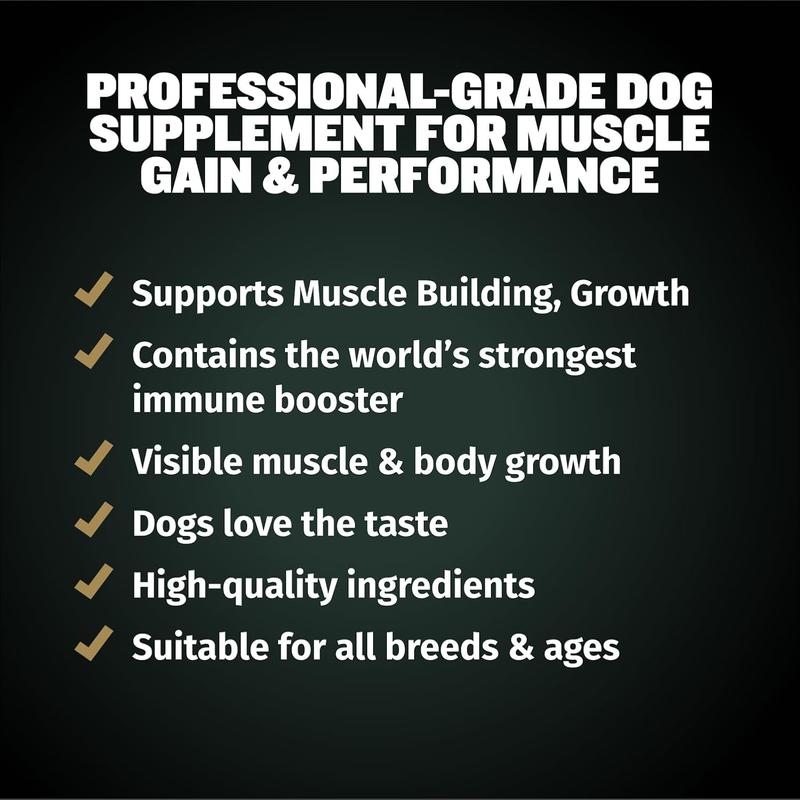 11-in-1 High-Potency Muscle-Building Chewables: These canine chewables help your dog build a strong physique. This healthy canine chewable is rich in 200mg of branched-chain amino acids (BCAAs) as well as essential vitamins and minerals, designed to help your dog build muscle, improve physical condition, and promote growth. Suitable for all breeds from puppy to adult. These delicious soft chewables are the top choice for anyone looking for a powerful muscle-building supplement for their dog.