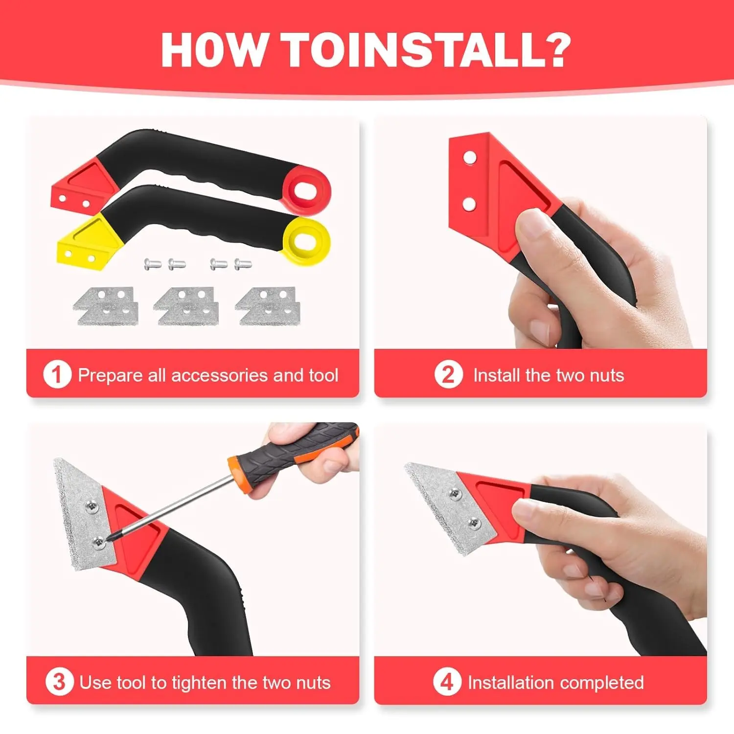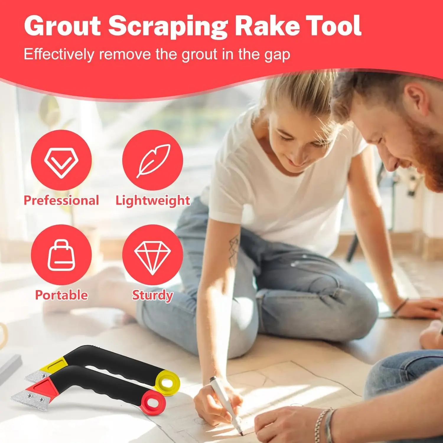 ·【Complete 11-Piece Set】 This grout tools for tile kit includes 2 grout saws (yellow and red), 6 alloy blades, 1 tile seam tool, and 2 hook knife replacement blades, giving you everything needed for grout removal and tile restoration