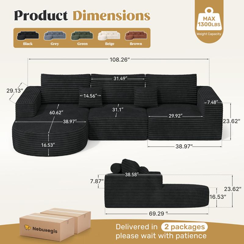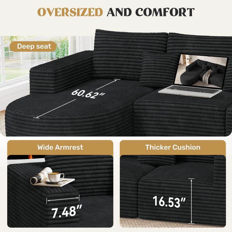 Conclusion This 110" modular sectional sofa couches offers ultimate comfort, versatility, and easy maintenance. With its boneless cloud design and reversible chaise, it is the perfect addition to any living room. The compression-packed delivery and no-assembly required design make it easy to set up. Enjoy ample seating and comfortable relaxation with this versatile sectional sofa.