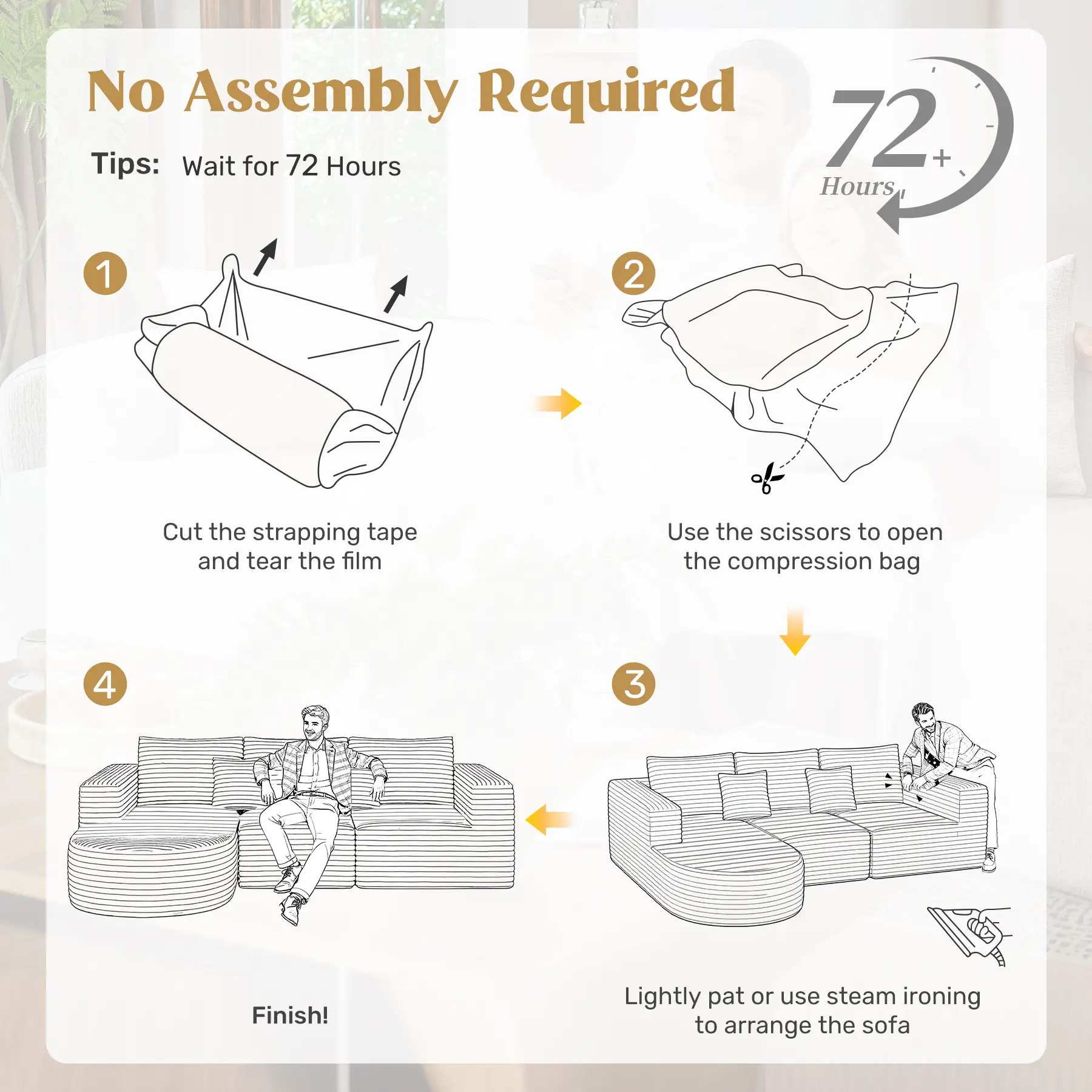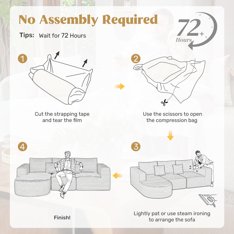 ⏰ 72-Hour Fluff to Perfection ⏰ - Gradual Expansion: Allow up to 72 hours for your new cloud couch sectional to fully expand and achieve its ideal plumpness. - High-Resiliency Foam: Gradually rises to deliver a firm, yet cloud-like, sofa.