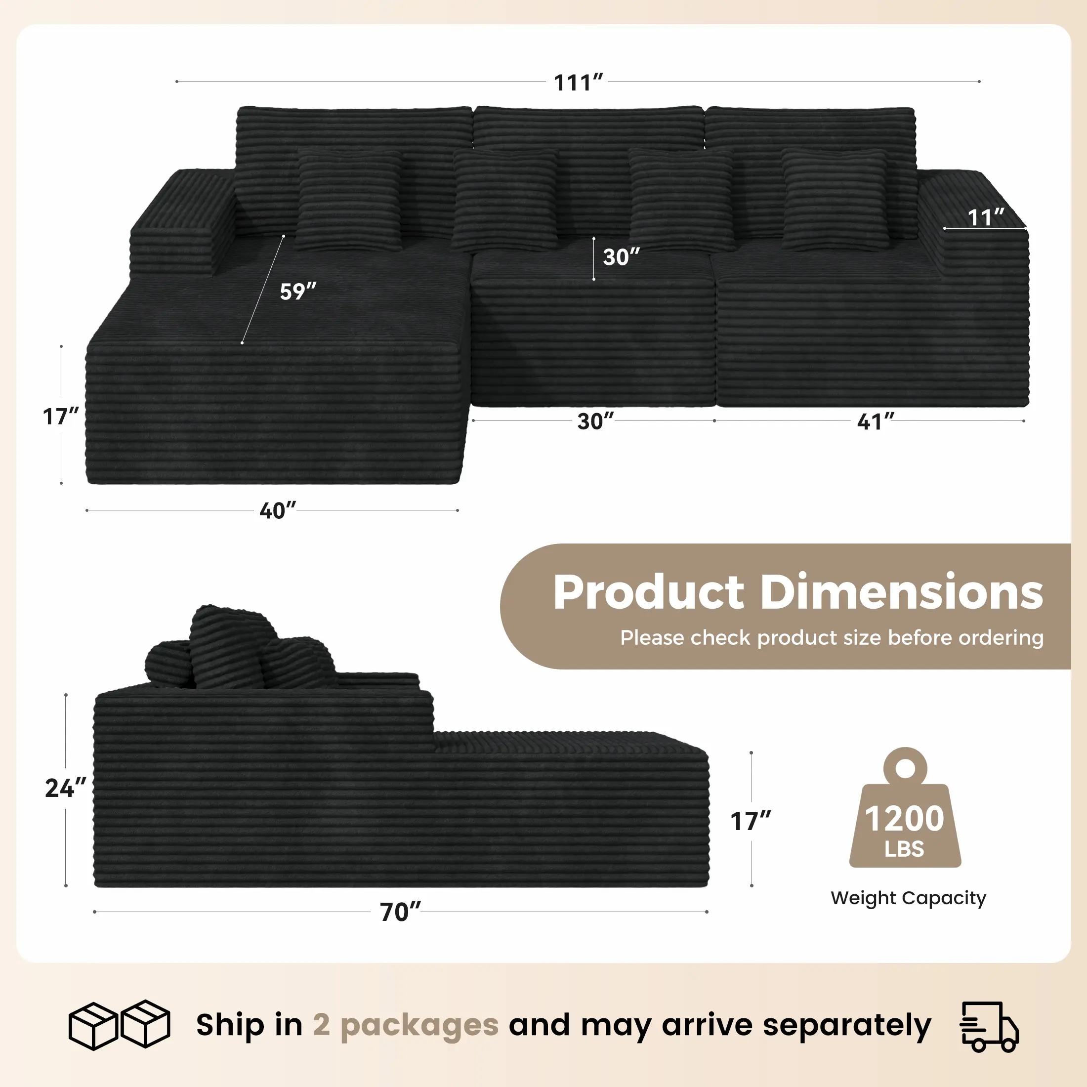 No Assembly Required: This sectional sofa comes ready to use, requiring no assembly.