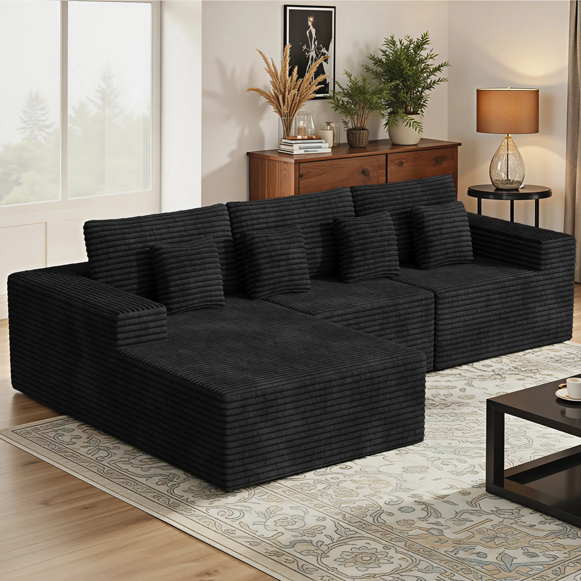 Modular Sectional: The modular design allows for easy rearrangement and customization to fit your space. ️