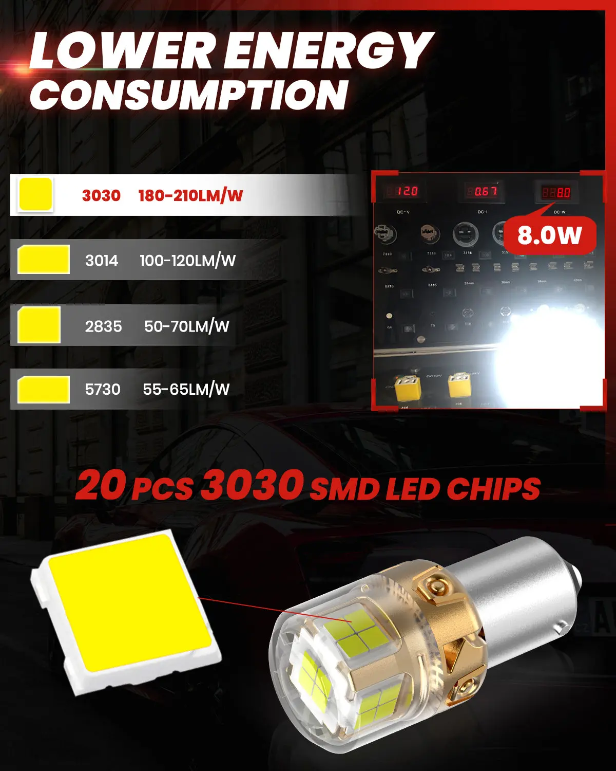 Fit Size: 1156 / 1156A / 1156NA / 1073 / 1095 / 1141 / 1159 / 1195 / 1293 / 1295 / 1295NA / 2396 / 3497 / 7506 / 7506L / BA15S / P21W