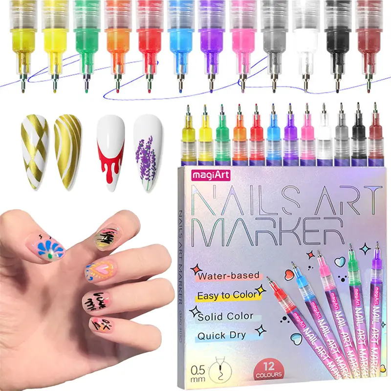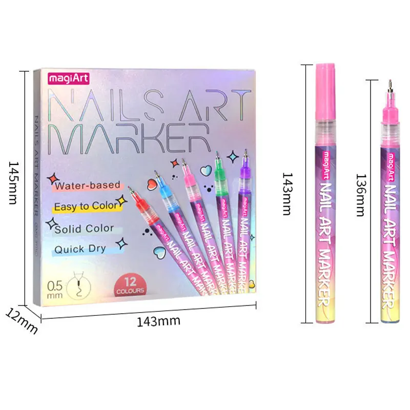 ·【Vivid Colors Variety】This nail marker set offers 12 bold and vibrant colors, allowing you to create eye-catching nail designs. The fine tip ensures precise lines and intricate details, making your nail art stand out with rich, opaque pigment for salon-inspired results.