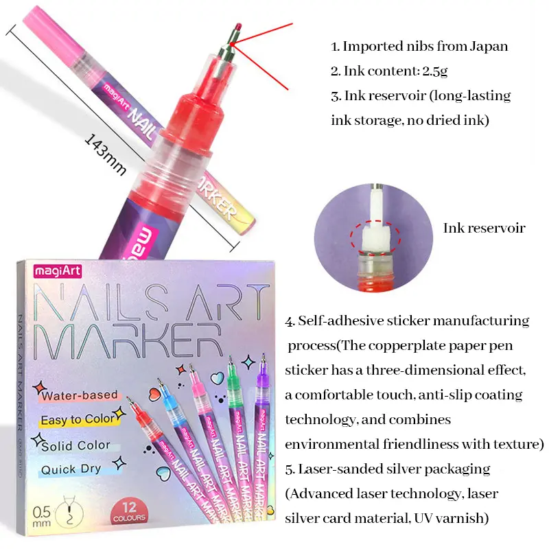 ·【Simple Maintenance Tips】Keep your nail art markers capped when not in use to prevent drying. For first-time use, gently press the tip to release ink. If any issues arise, our customer service is always available to assist with your manicure art pens.