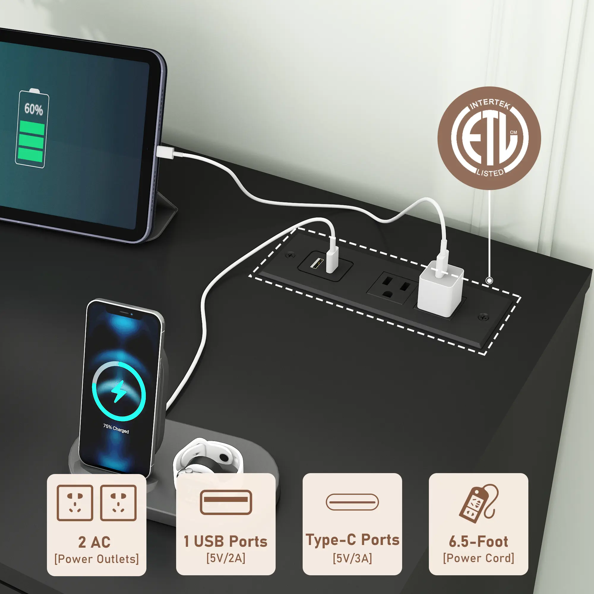 Material: Engineered wood, Metal