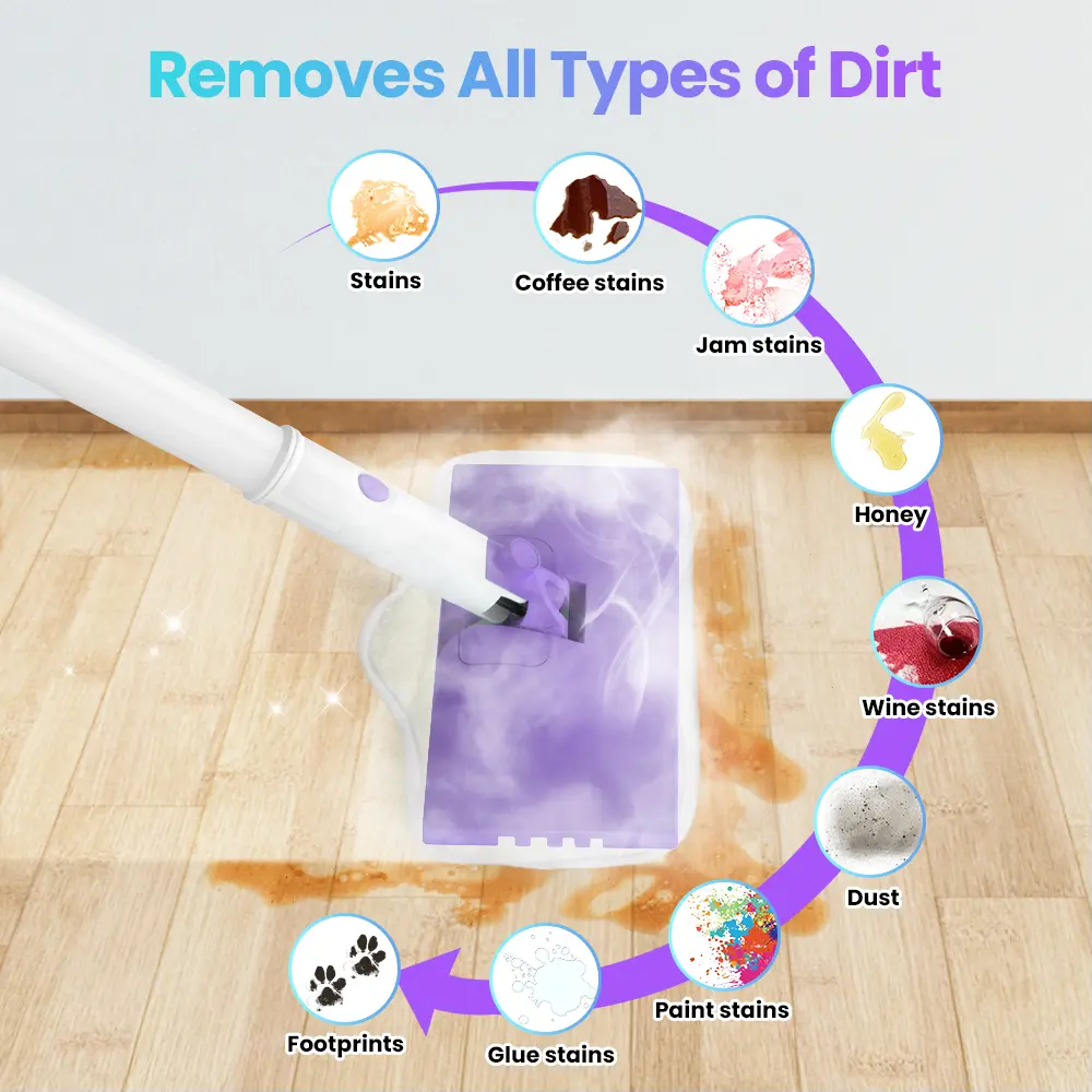 In contrast, steam mops achieve deep cleaning using only water. With single-hand operation, they save significant time and labor.
