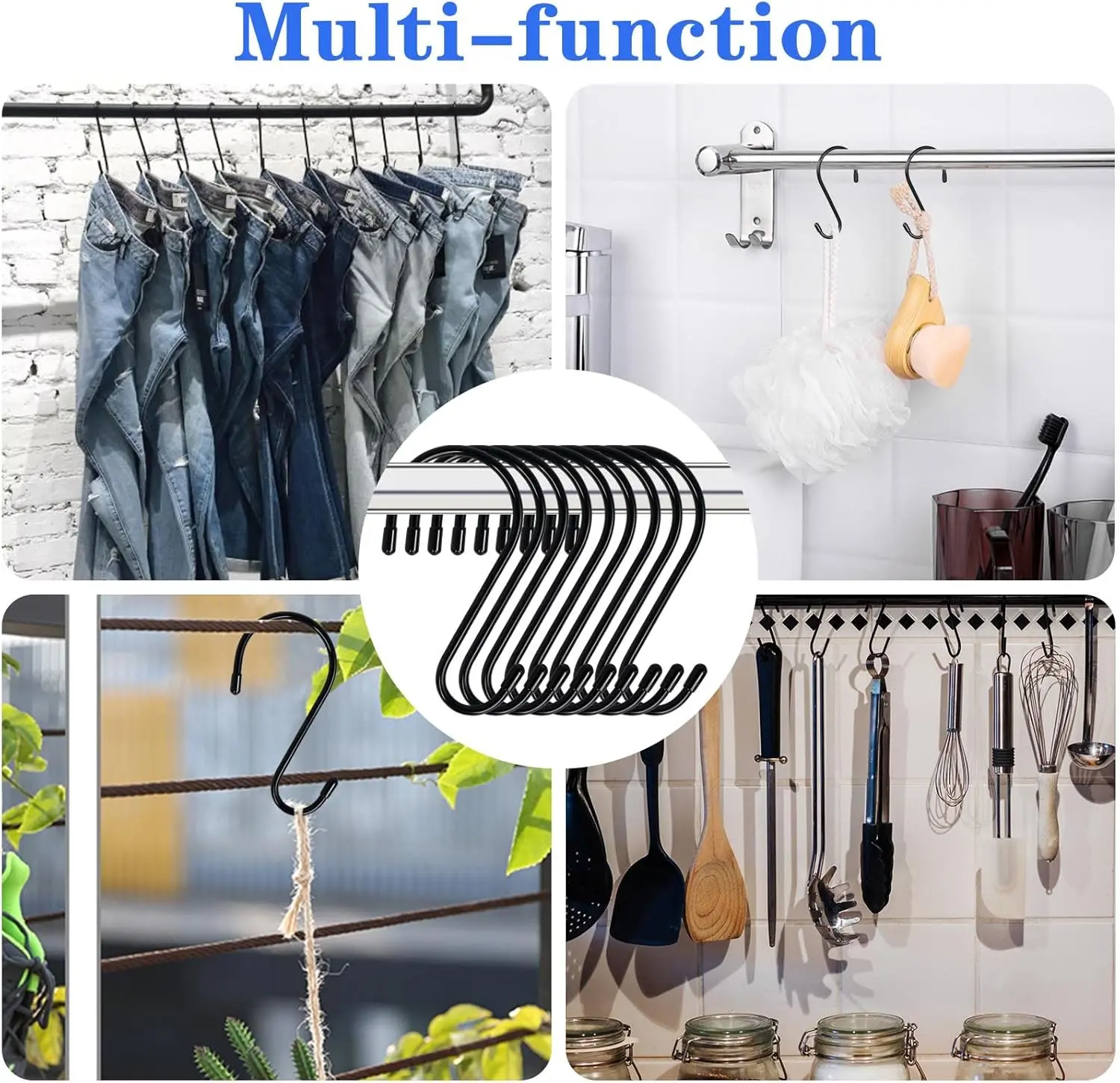·Rubber Coated Non-Slip Hooks:Our large s hook surface are coated with vinyl rubber and two rubber stopper on the end,which is rust-resistant, slipping and resist falling , you don't need to worry that these hooks would scratch your clothes or purse,scarf, jeans among using, and these closet s hooks would not Fall off when you remove the item.