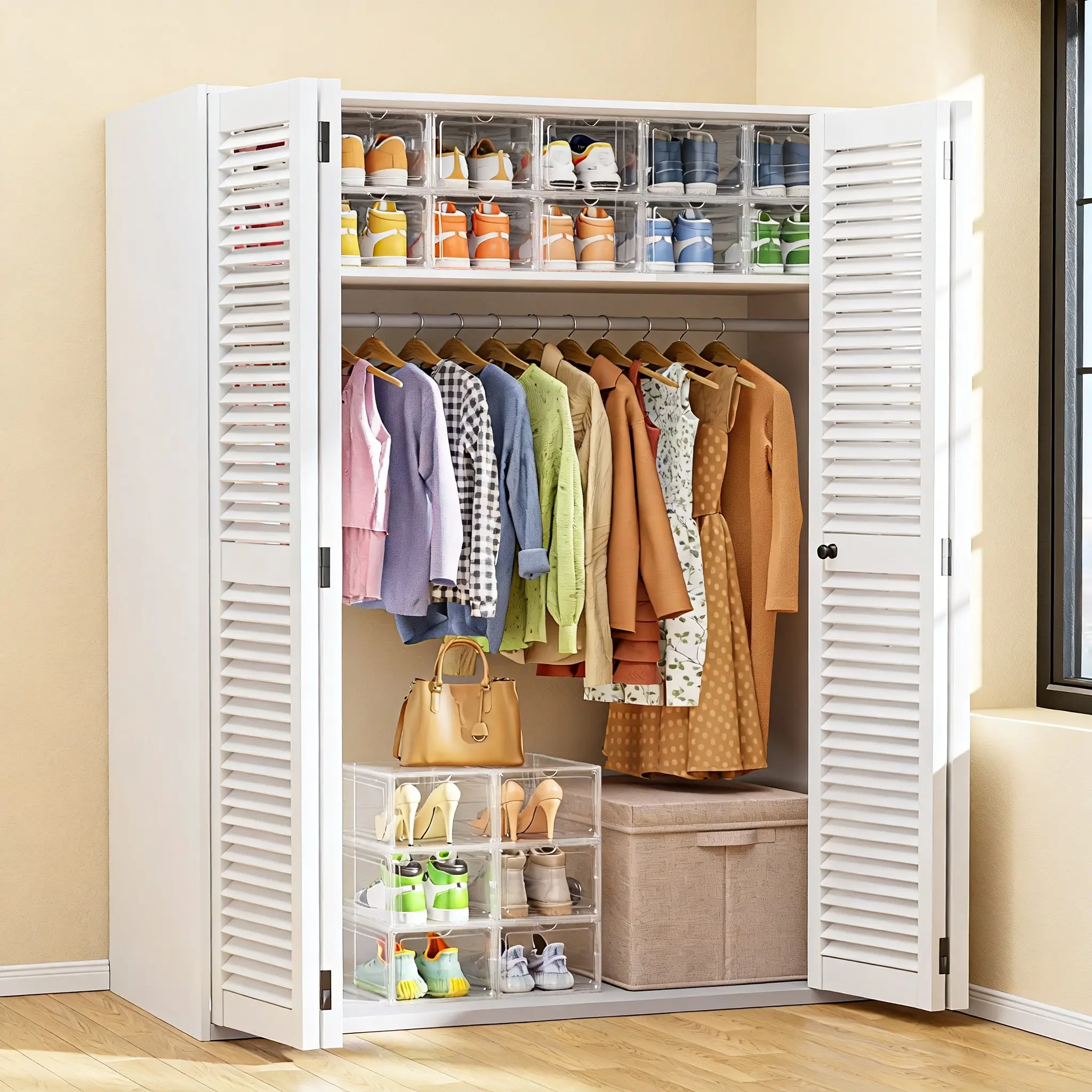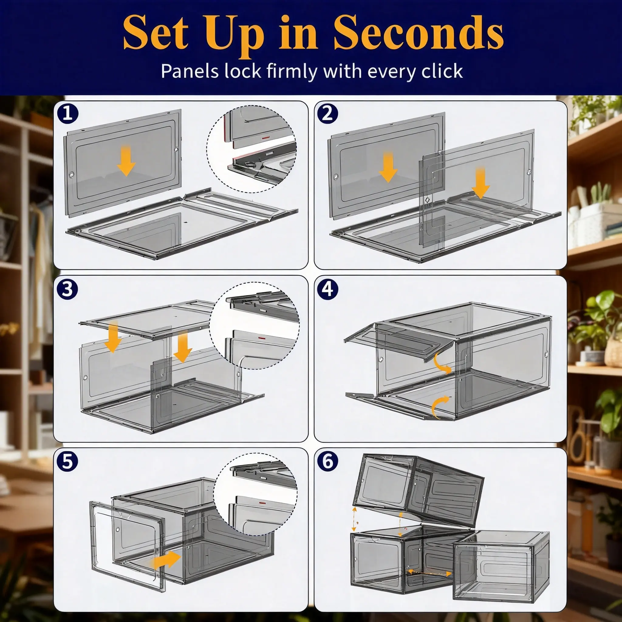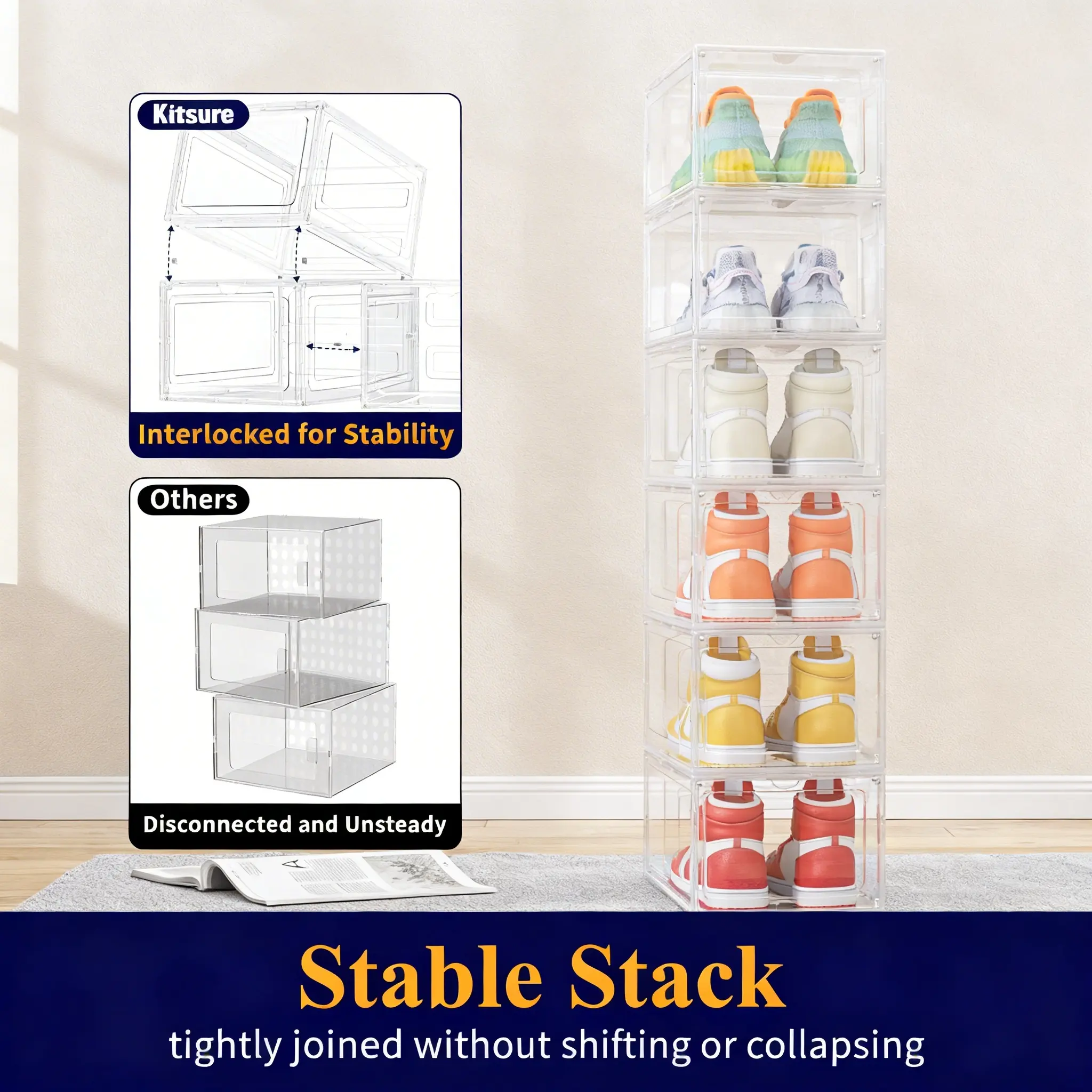 12 Pack Clear Black Shoe Storage Boxes, Stackable Plastic Shoe Organizer with Drop Front Door, Transparent Sneaker Storage Cases for Closet, Space Saving Shoe Containers for Men and Women, Foldable Shoe Box Organizer for Home
