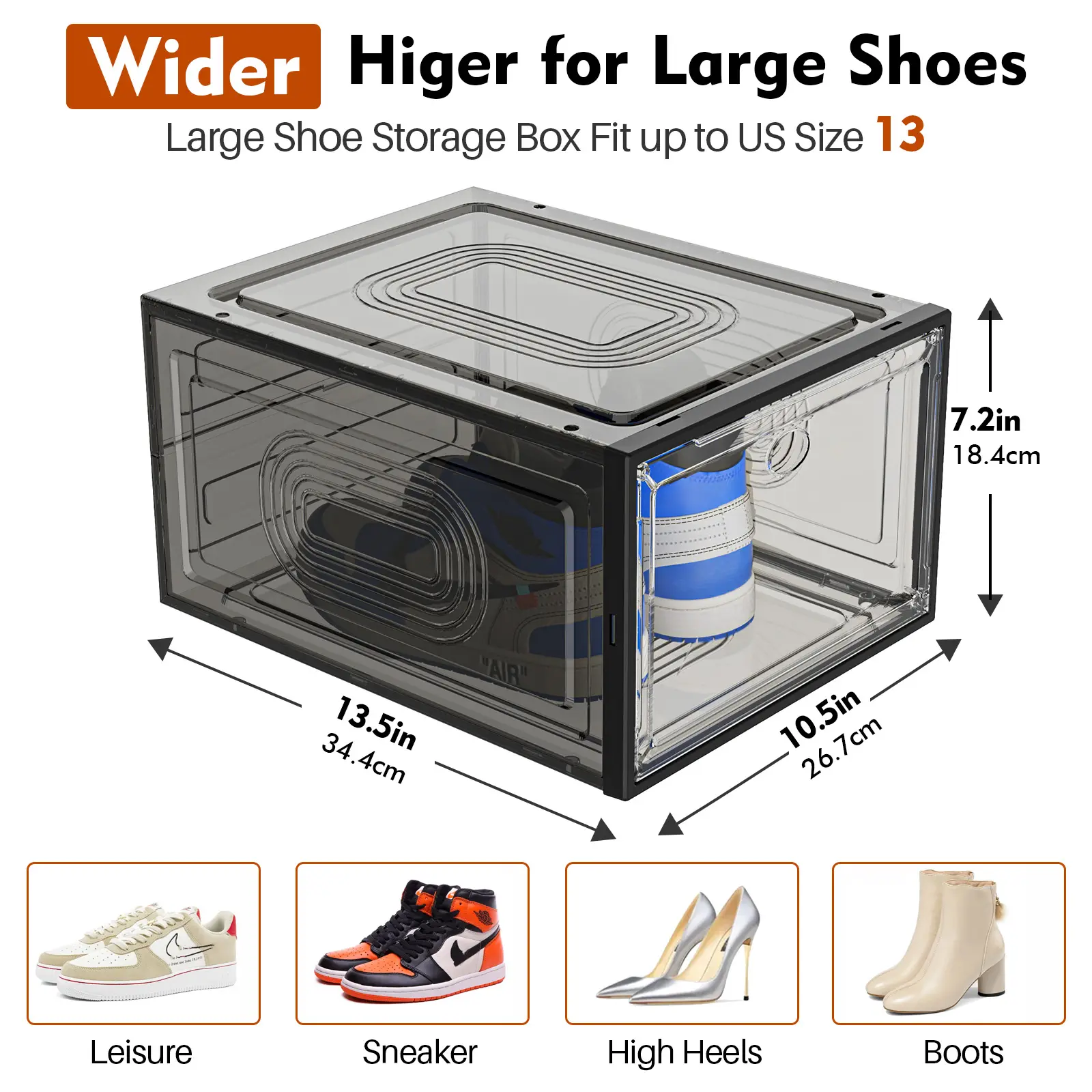 I’m a size 12, with some 13s in the mix, and they “will fit” a 13, but you gotta put in some work to get them in and out of the box bc of the height