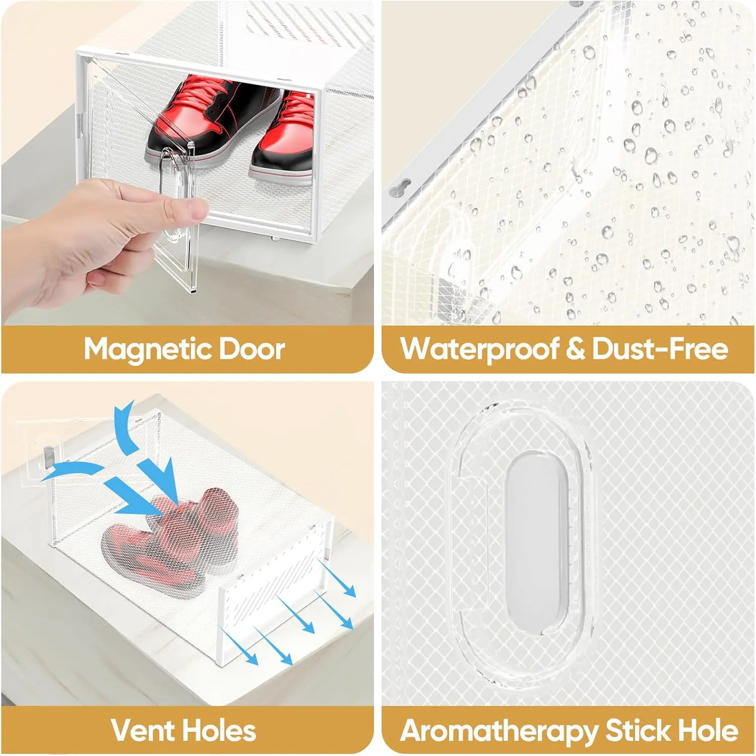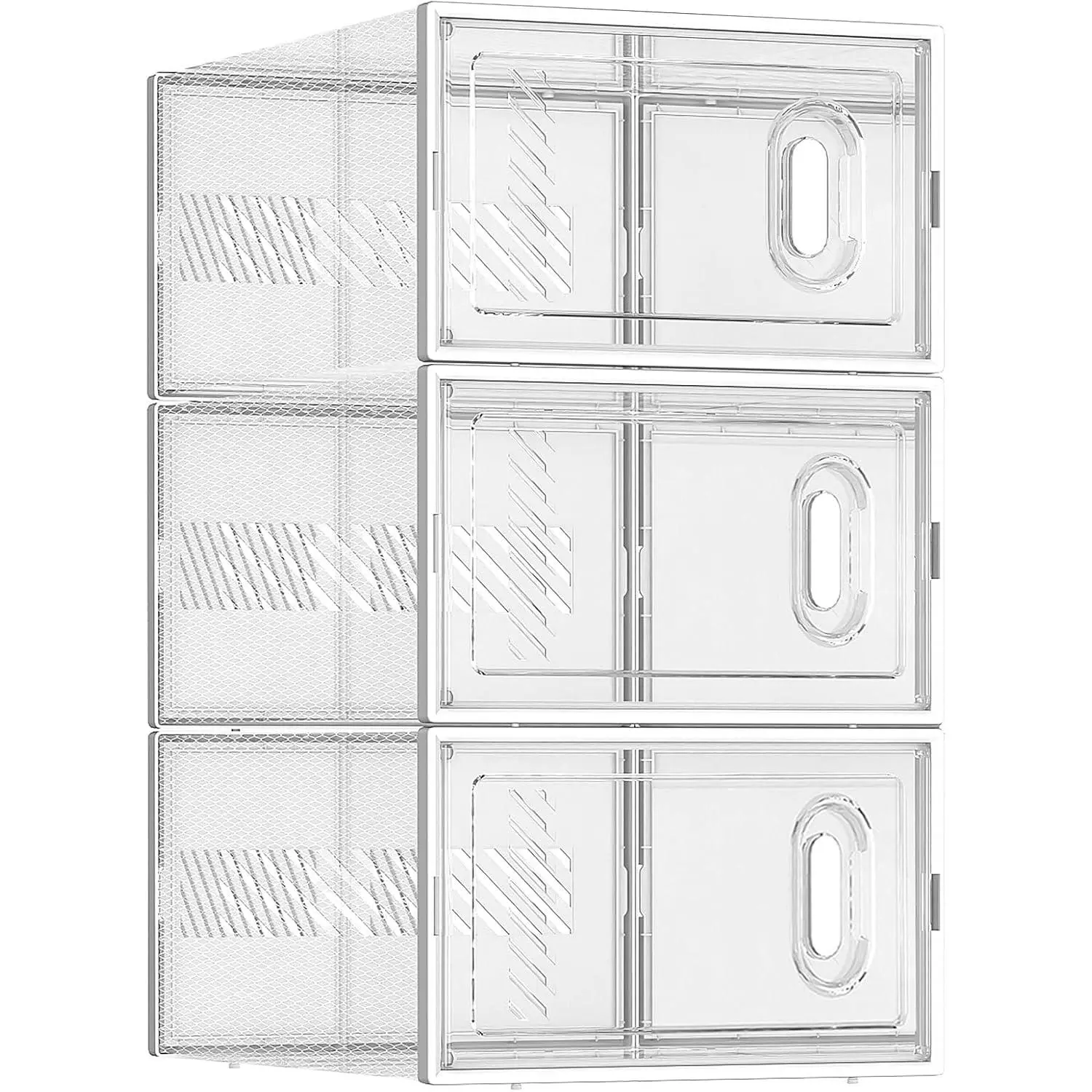 5. 12 Pack Stackable Shoe Storage Boxes Fit Size 9, Thickened Clear Shoe Box Bins with Lids, Plastic Foldable Organizer Sneaker Storage Containers (12 Pack, Large White)