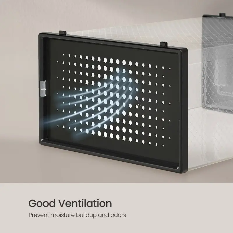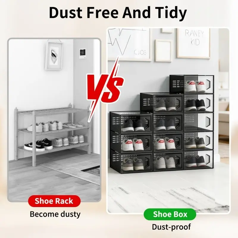 【Transparent Material】: Made from transparent plastic, these boxes allow you to easily see and access your shoes.