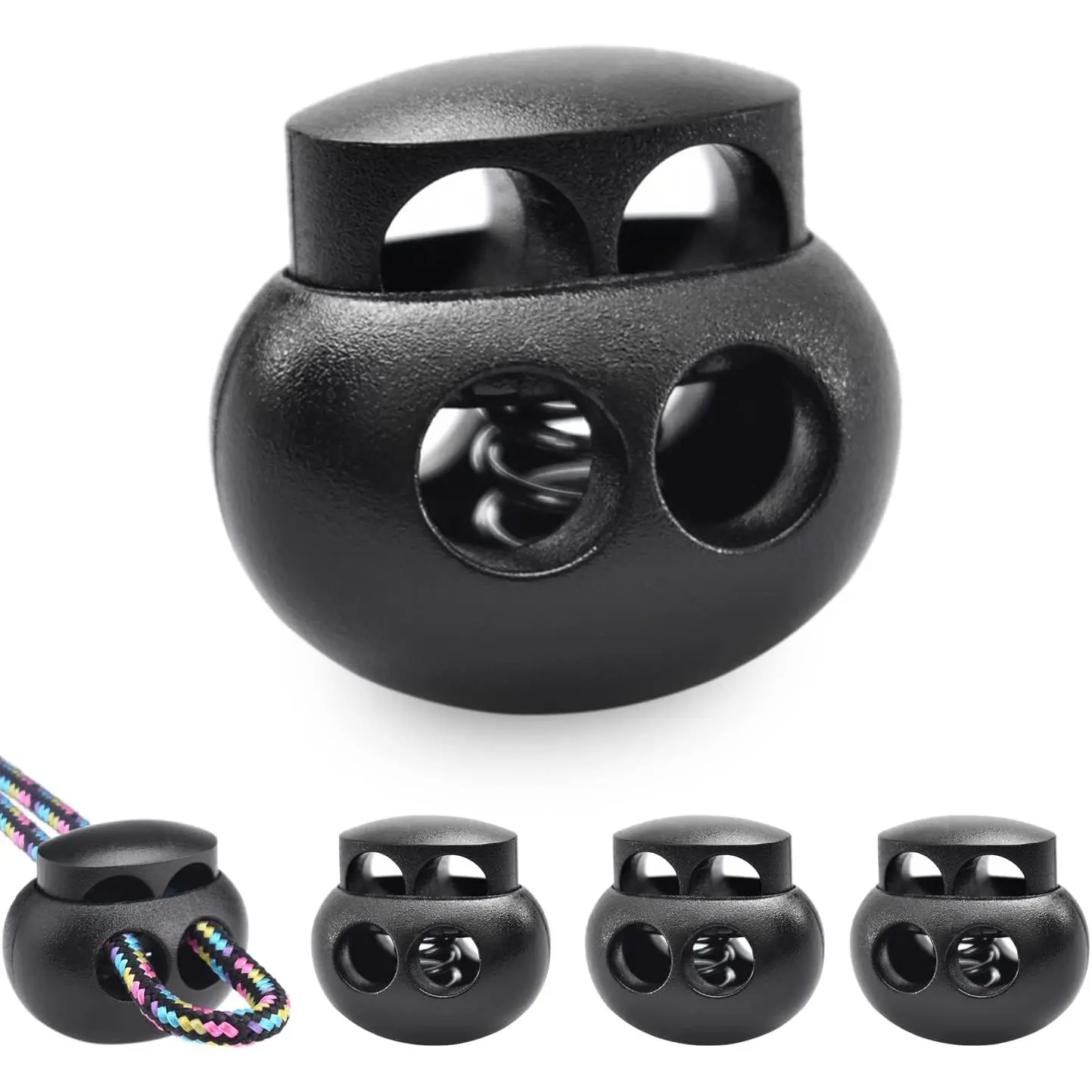 : Double hole spring cord lock for paracord drawstring shoelace string, ideal for handicrafts and with daily supplies. DIY is for your family and