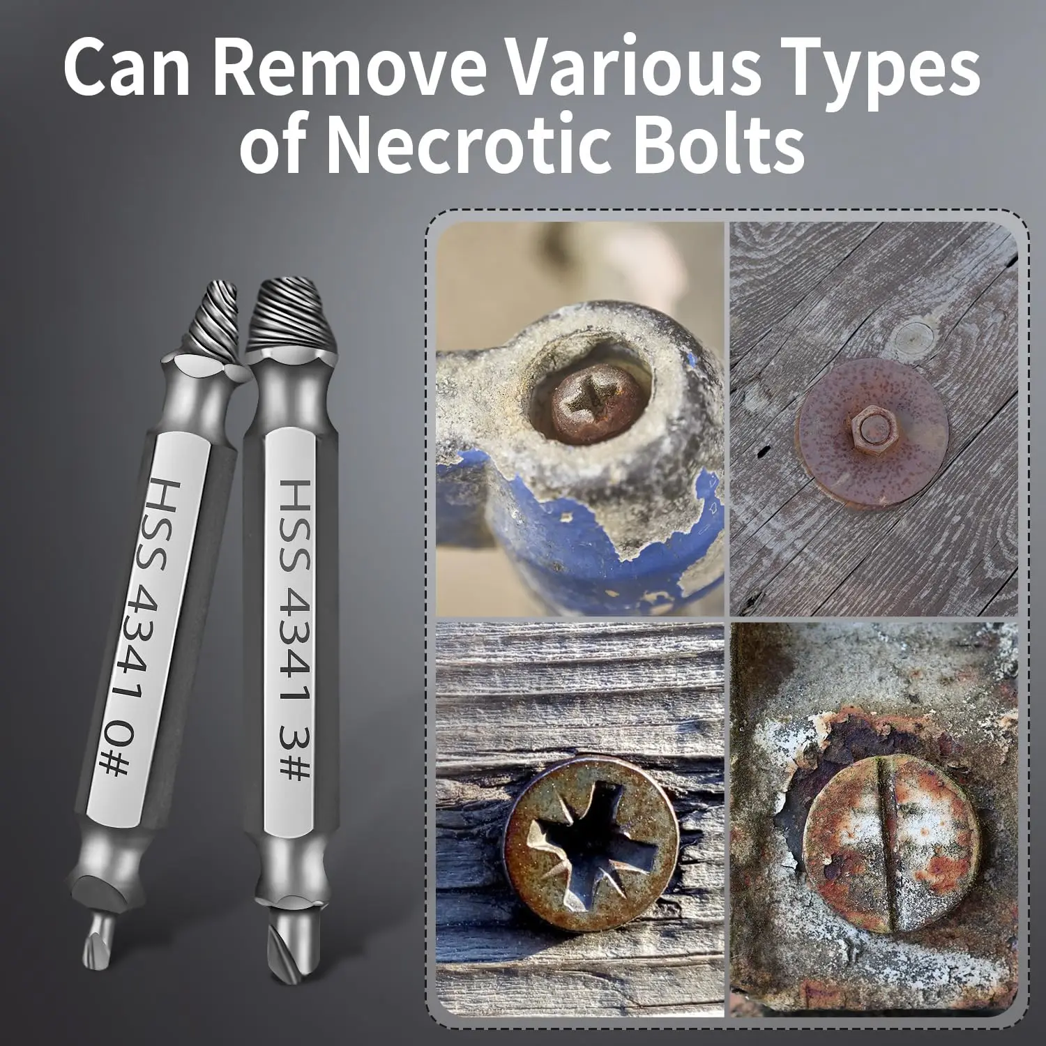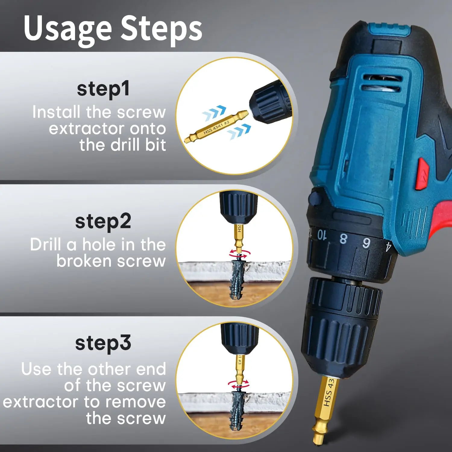 HIGH QUALITY: This dscrew extractor kit tool kit is made from High-Speed Steel H.S.S 4341# , which have high hardness of 63hrc, it's durable and easily to remove any damaged screws.