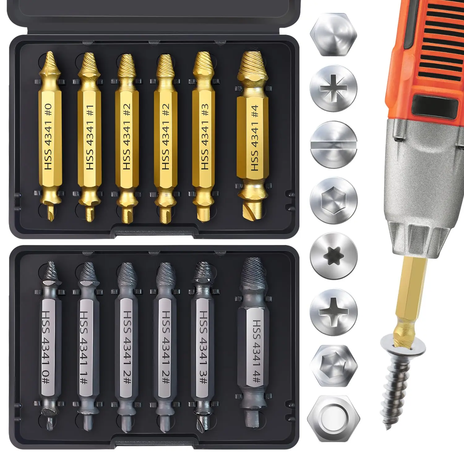 APPLY TO ALL DRILLS : 12 pieces stripped screw extractor work with any drill and all the screw size or bolt (3-12mm), These extractor tools are used to reverse the damaged screw counterclockwise until it is released.