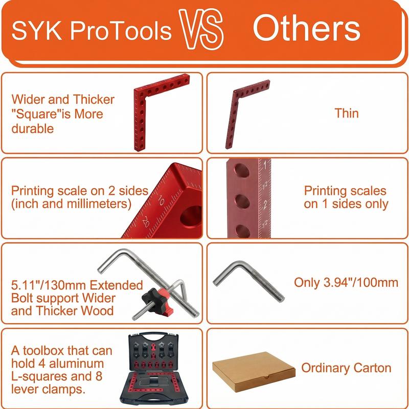 ·4× Aluminum L-Squares (90° angle jigs): CNC-machined for accuracy. Imperial & metric scales. Lightweight, rigid, won't warp.