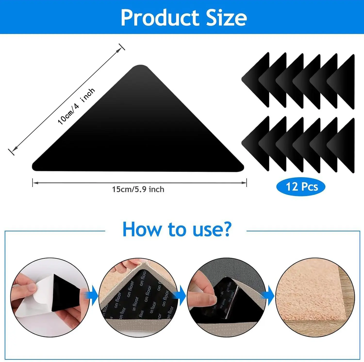 ·Non Slip Rug Gripper: Keeps corners flat and prevents slipping.