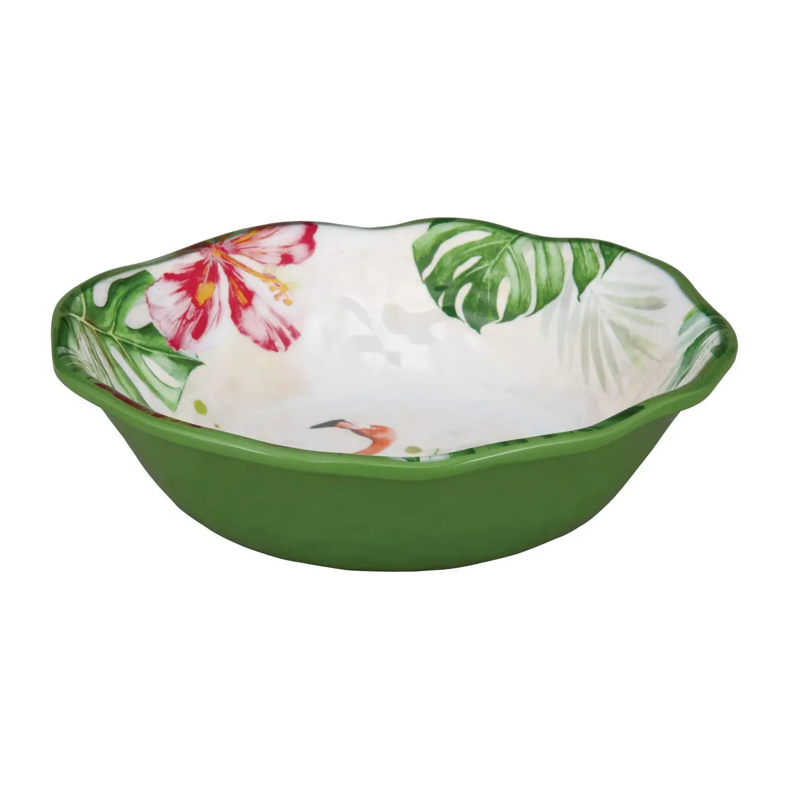 Each plate and bowl features playful flamingos and lush monstera leaves, creating a tropical ambiance. The vibrant colors and intricate details add a fun and whimsical touch to your dining experience. The dinnerware set is stackable, keeping your kitchen neat and organized, and saving space in drawers and cabinets.