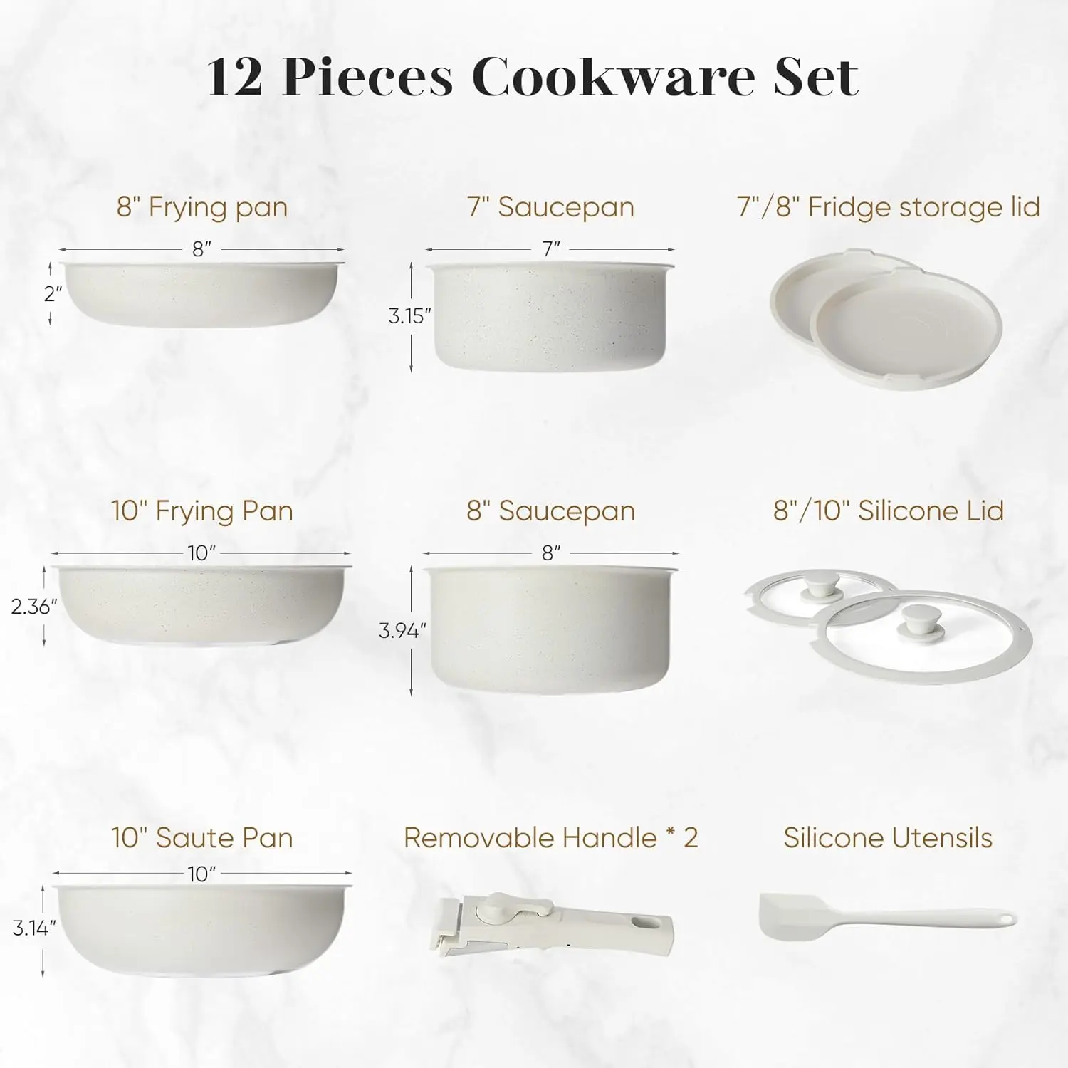 ·Comprehensive Cookware Set:This set includes a variety of pots,pans,andessential kitchen tools,reducing the need for additional purchases and offering you the convenience of having a complete cookware set ready to use.