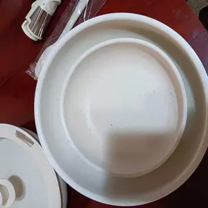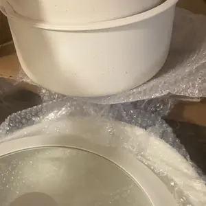Las cazuelas las recibí pero una estaba dañada☹️en la foto se puede ver que está ovalada por una esquina.