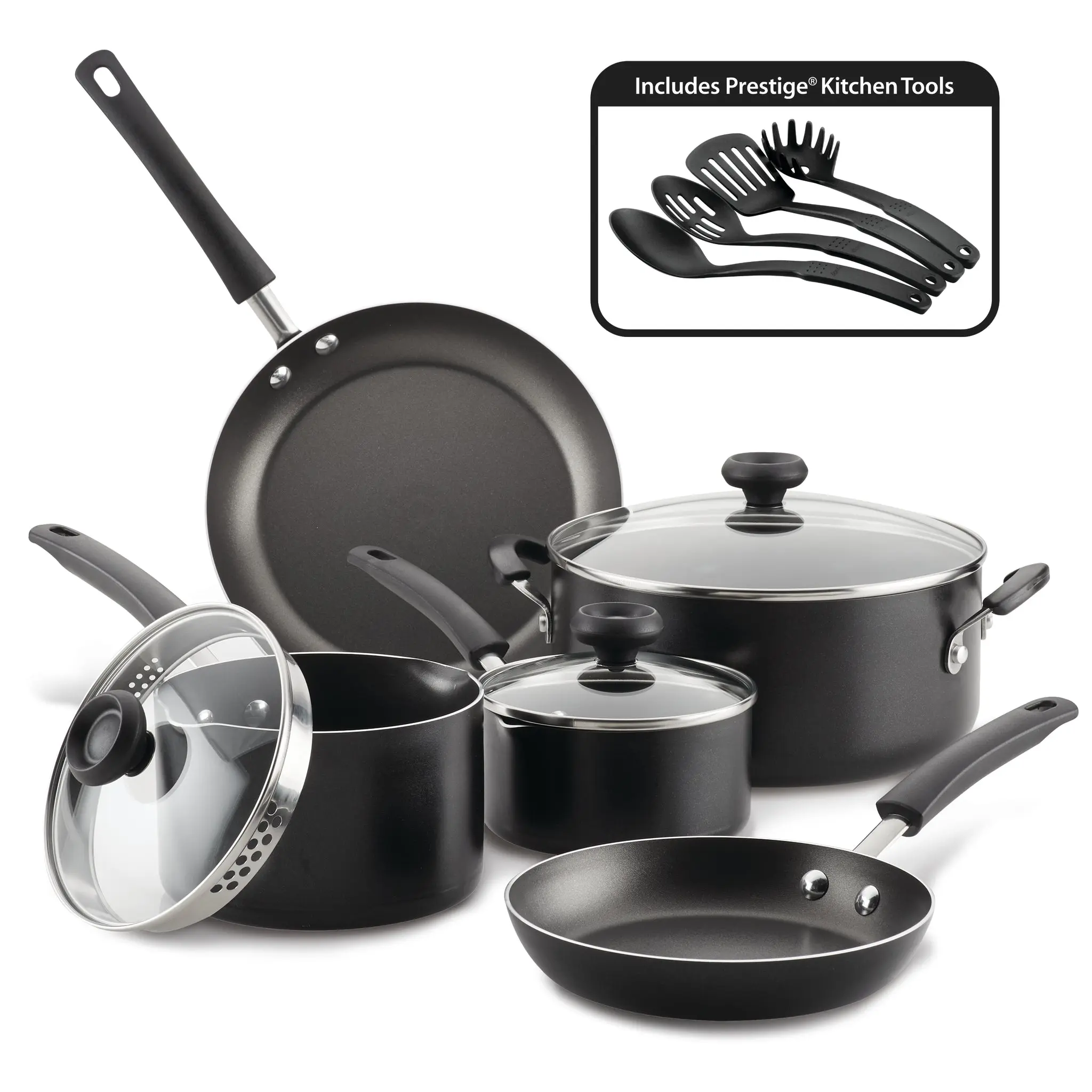 I am so happy with the quality of this cookware set. It is absolutely amazing! It performs perfectly as a nonstick set and clean up is so easy. The selection of pots and pans is everything I need in a cookware set. Plus, the addition of fantastic cooking utensils makes this set my favorite! If you are looking for outstanding cookware, this is the set for you.