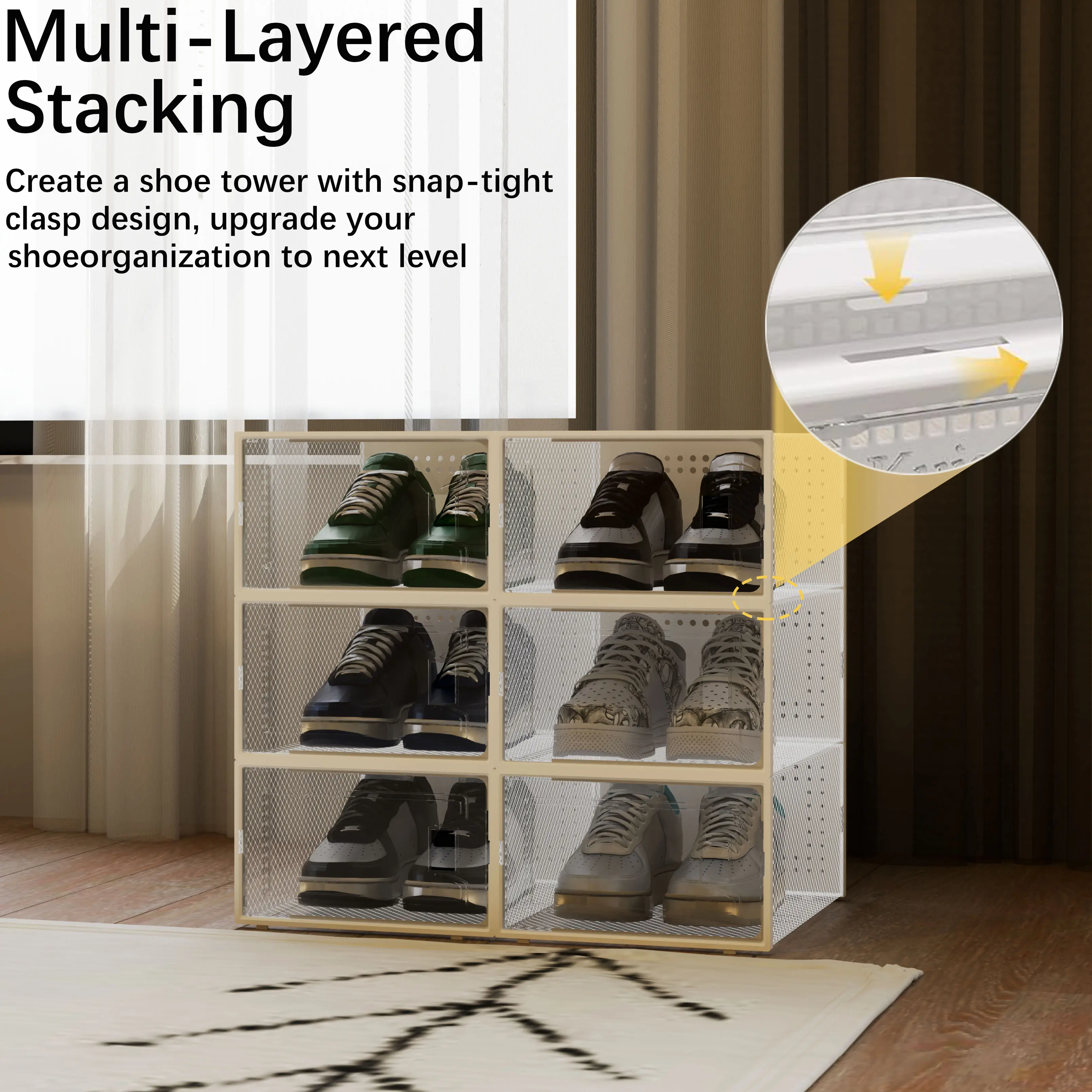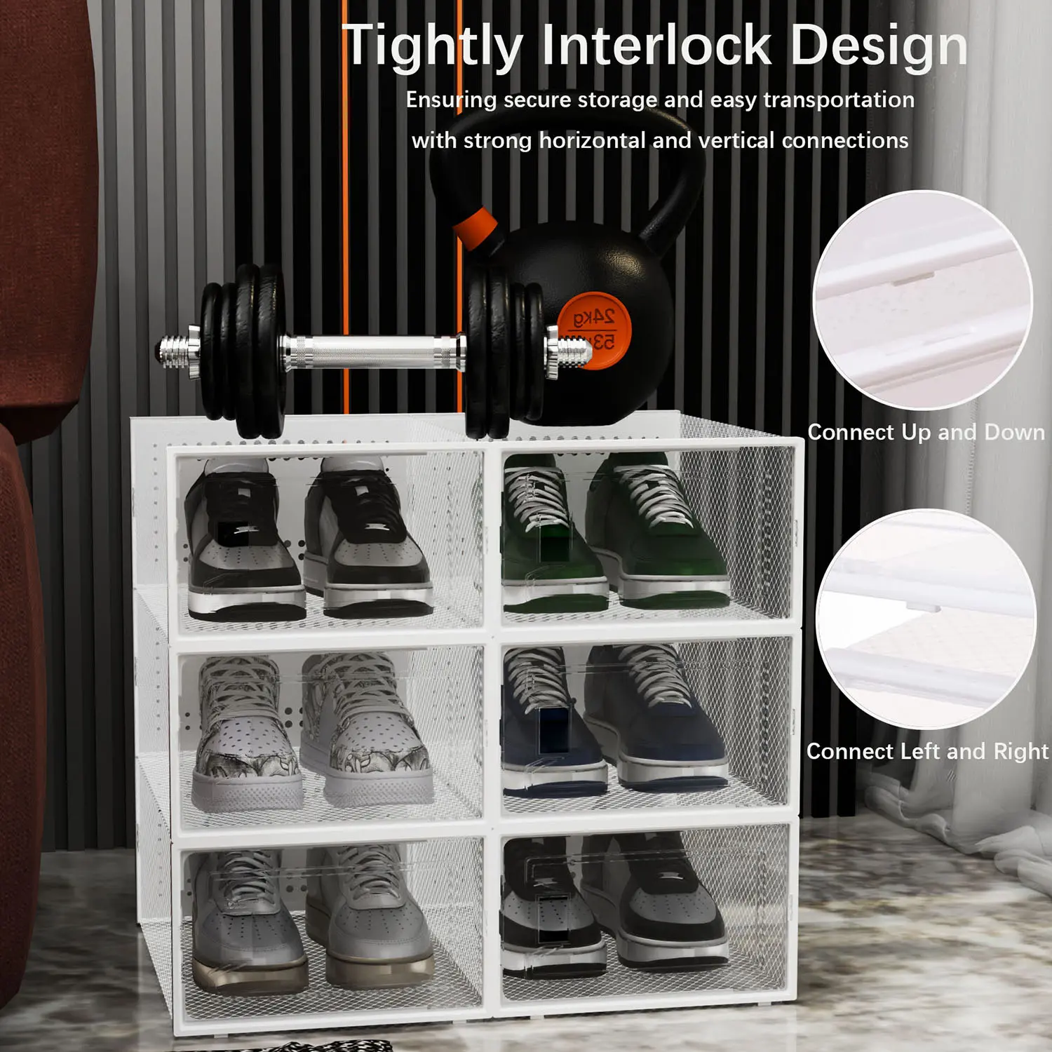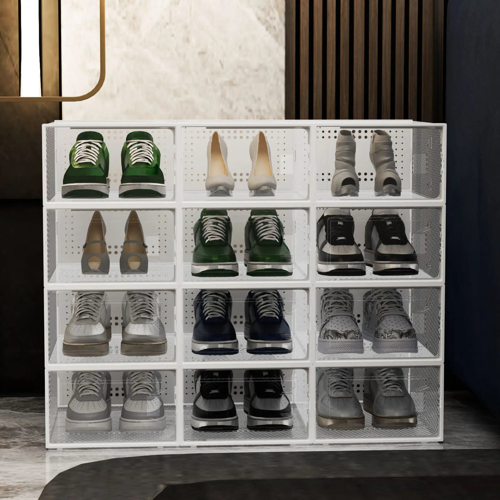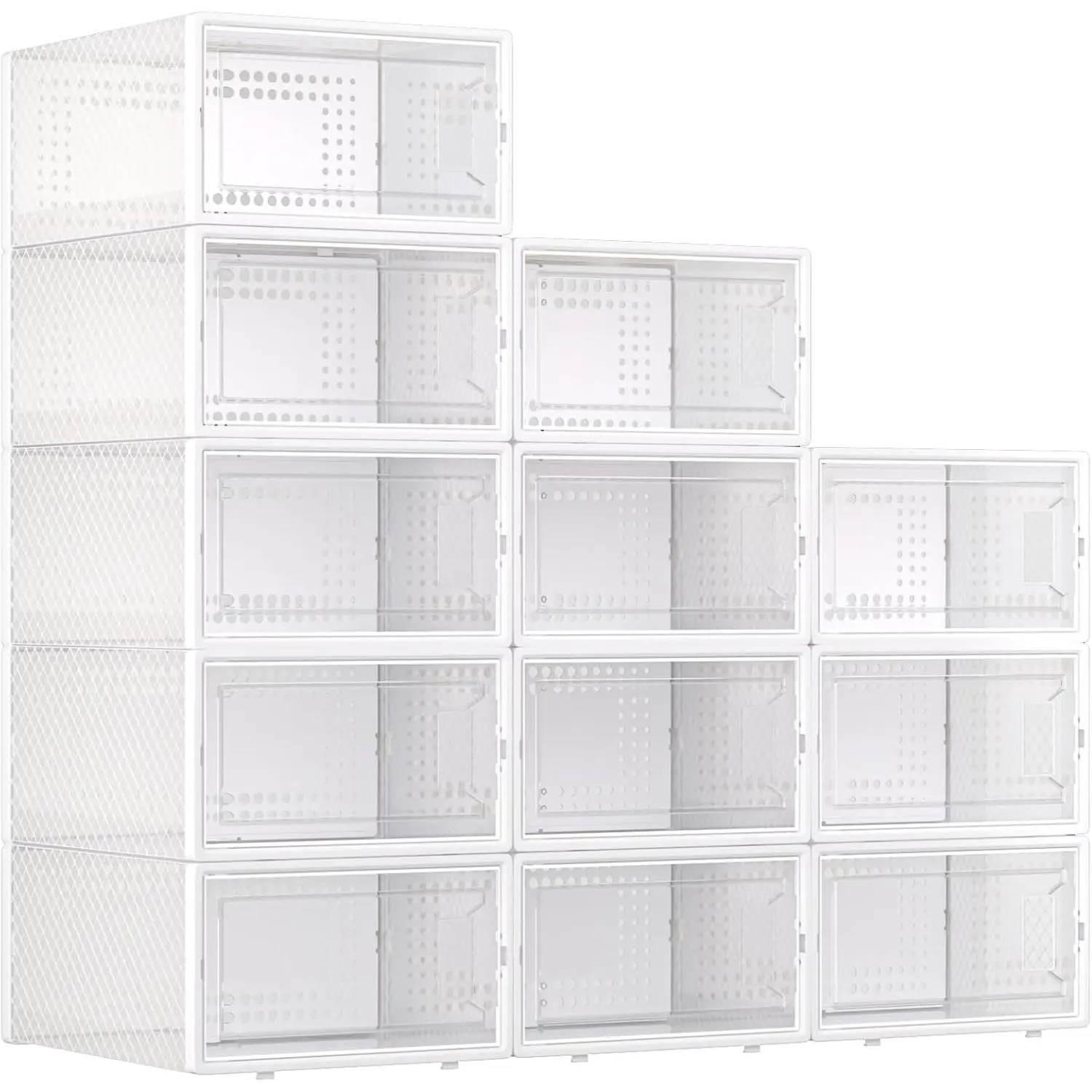 12Pcs Stackable And Foldable Shoe Boxes with LIDS - Clear, Waterproof Plastic Sneaker Storage Containers,Space Saving Shoe Rack,Substitute For Drawer Organize Unit, White multipurpose use
