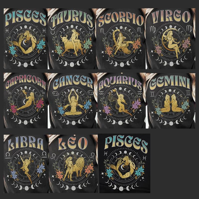 ·This T-shirt features a cute 12 Zodiac Sign print, perfect for astrology enthusiasts. 🌌