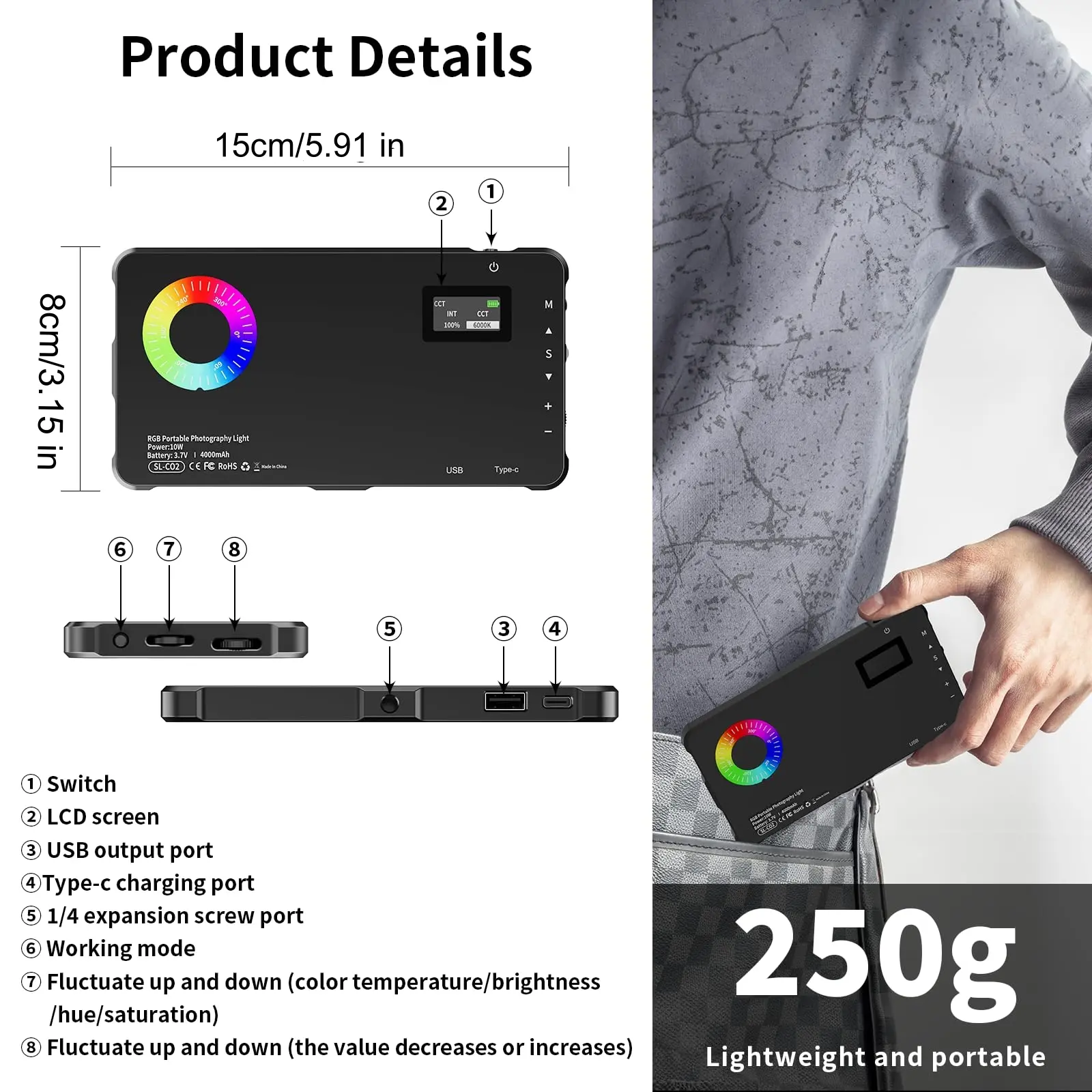 【USB Rechargeable】: Equipped with a USB rechargeable clip, ensuring convenience for continual use without the hassle of changing batteries.