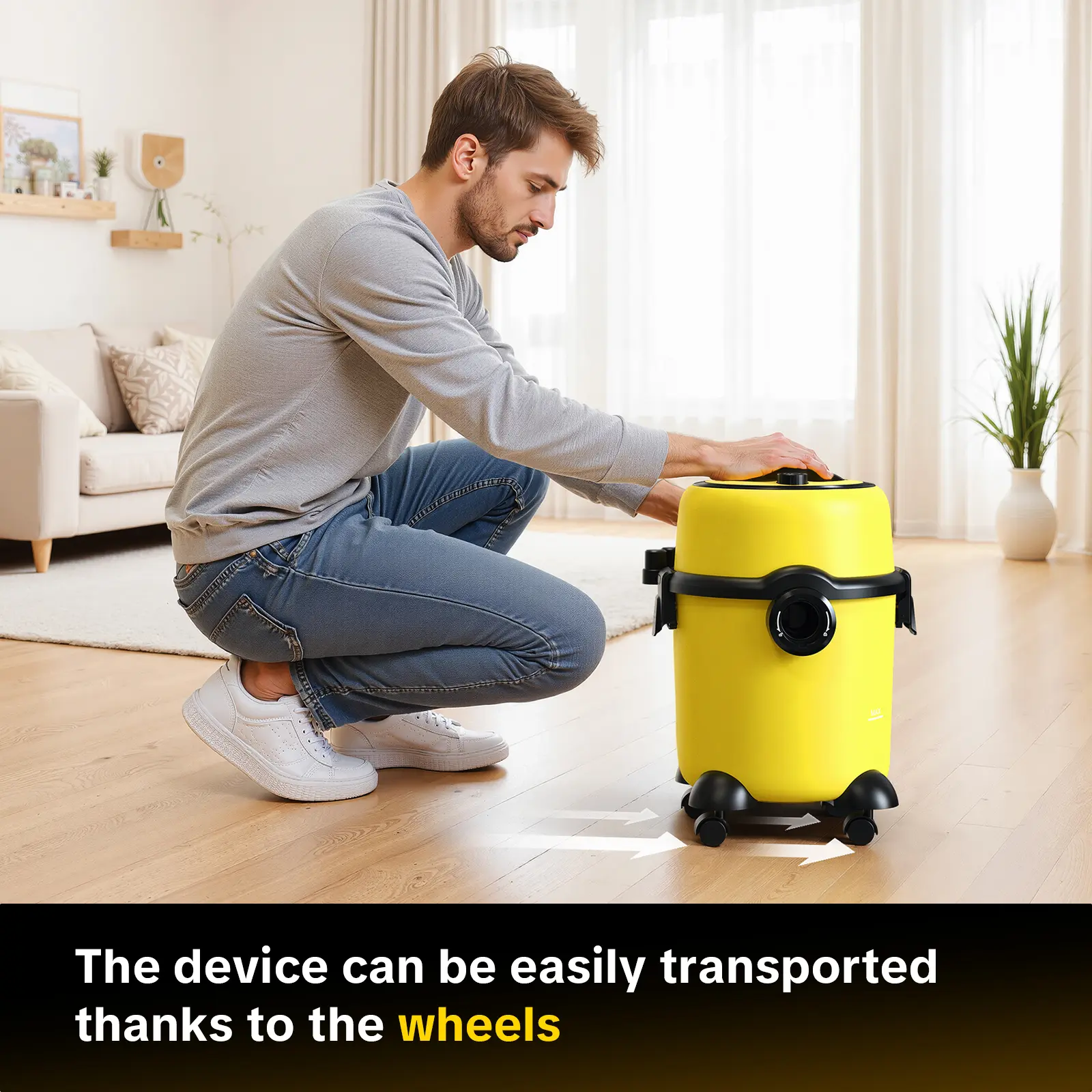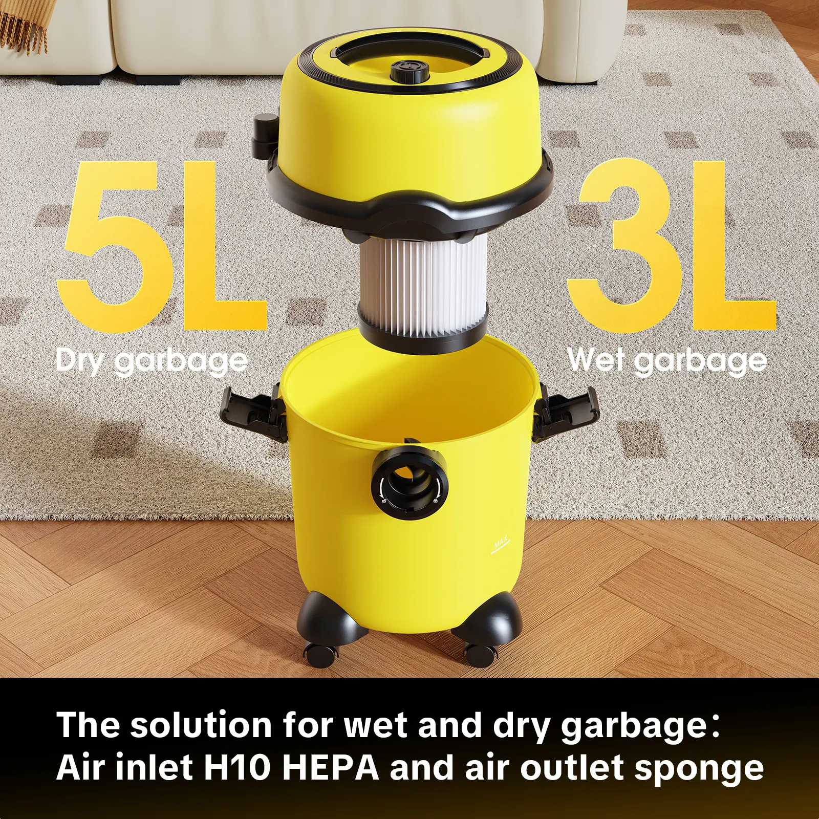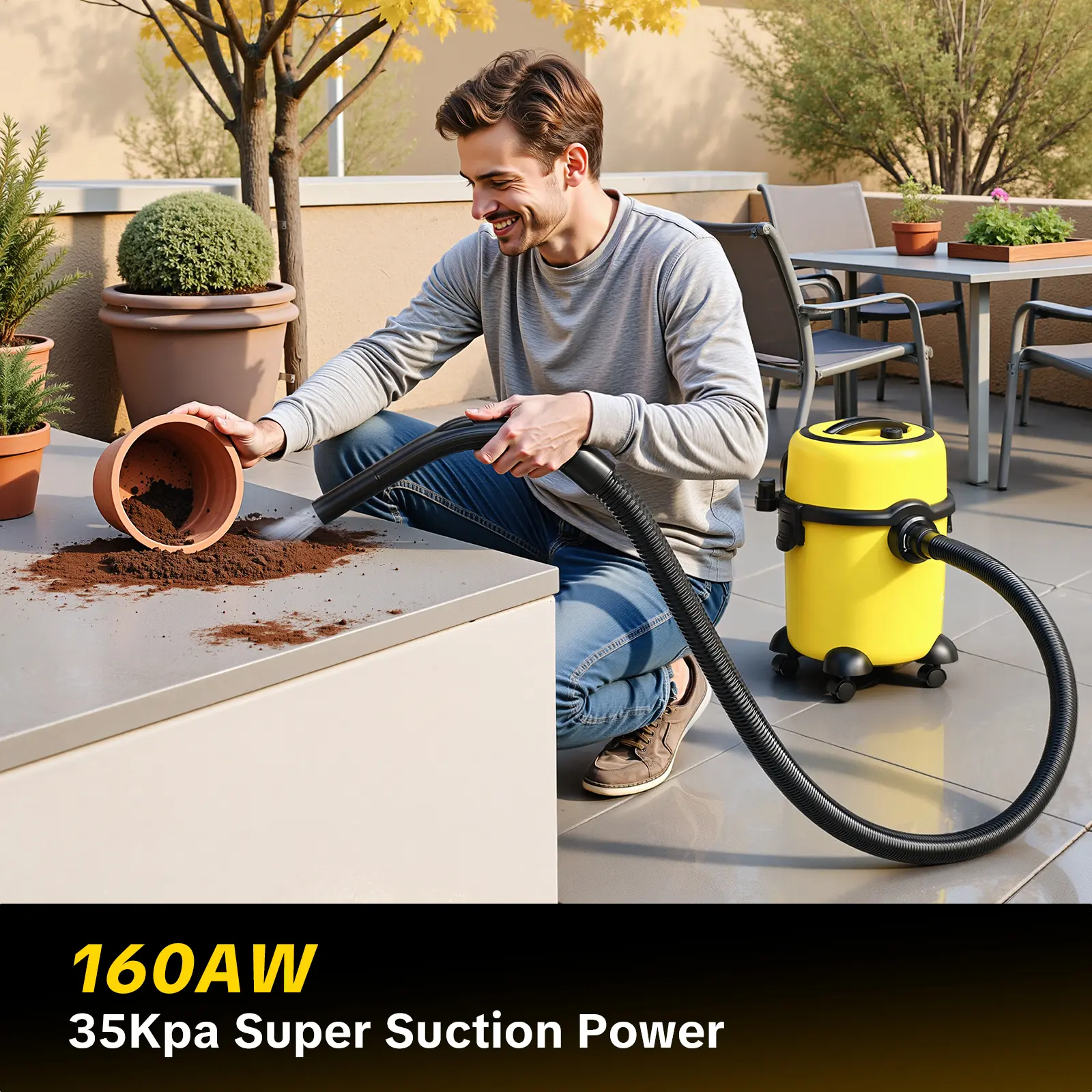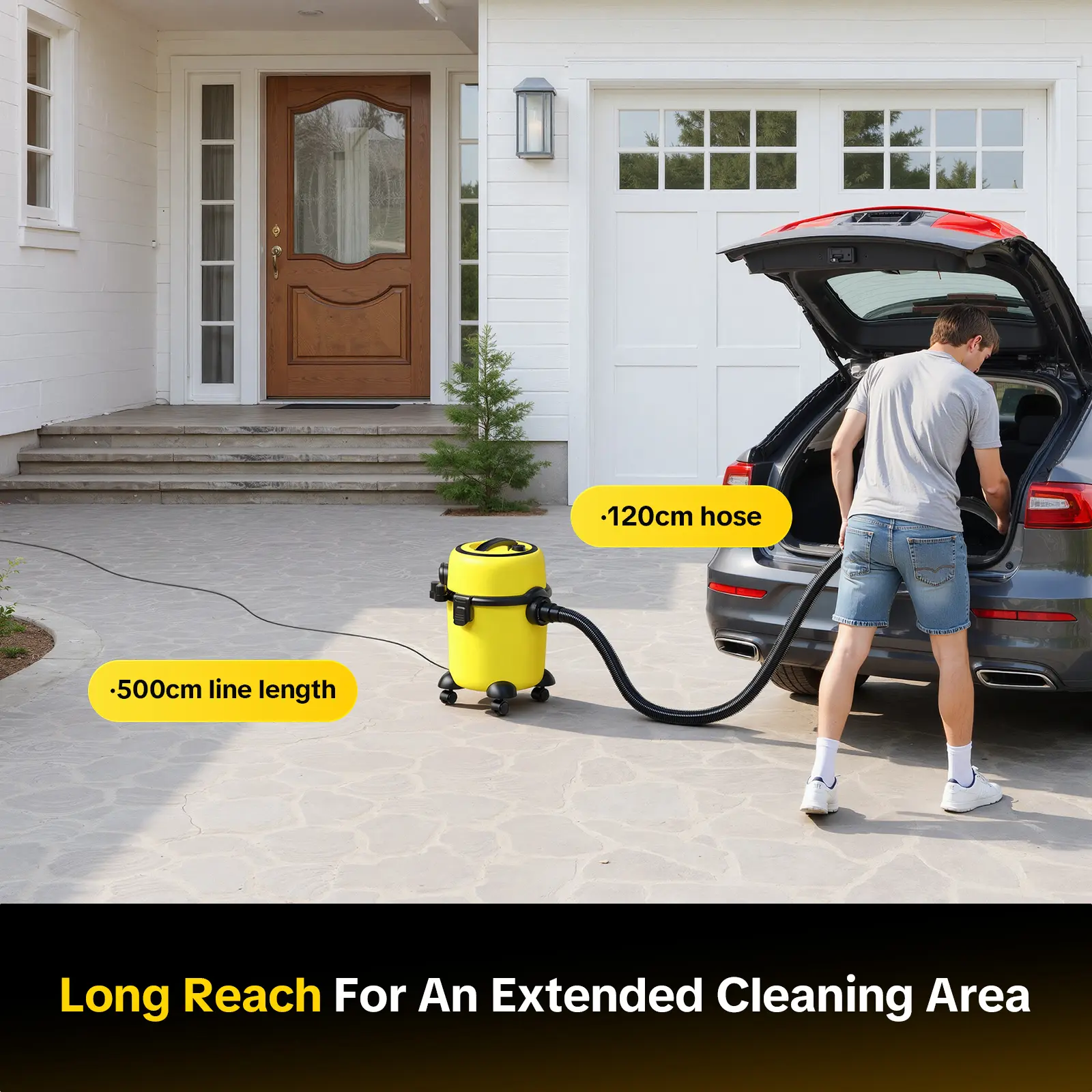The 1200W Wet/Dry Portable Vacuum Cleaner offers 160AW powerful suction, ensuring efficient cleaning. With a pressure range of 16-10kPa, it handles various cleaning needs. The 5L large capacity allows for extended use without frequent emptying. Ideal for garages, yards, and newly renovated homes, this vacuum is a versatile choice.
