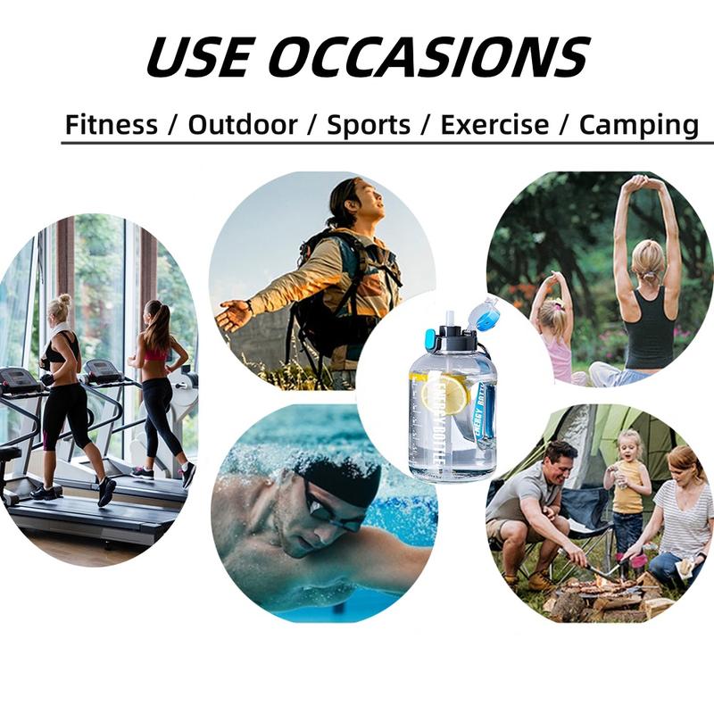5. Gallon water bottle, hot and cold water large capacity water bottle, 128 oz (with straw and time marker), leak-proof sports water bottle, BPA-free leak-proof large sports water bottle, reusable fitness sports water bottle Hydration