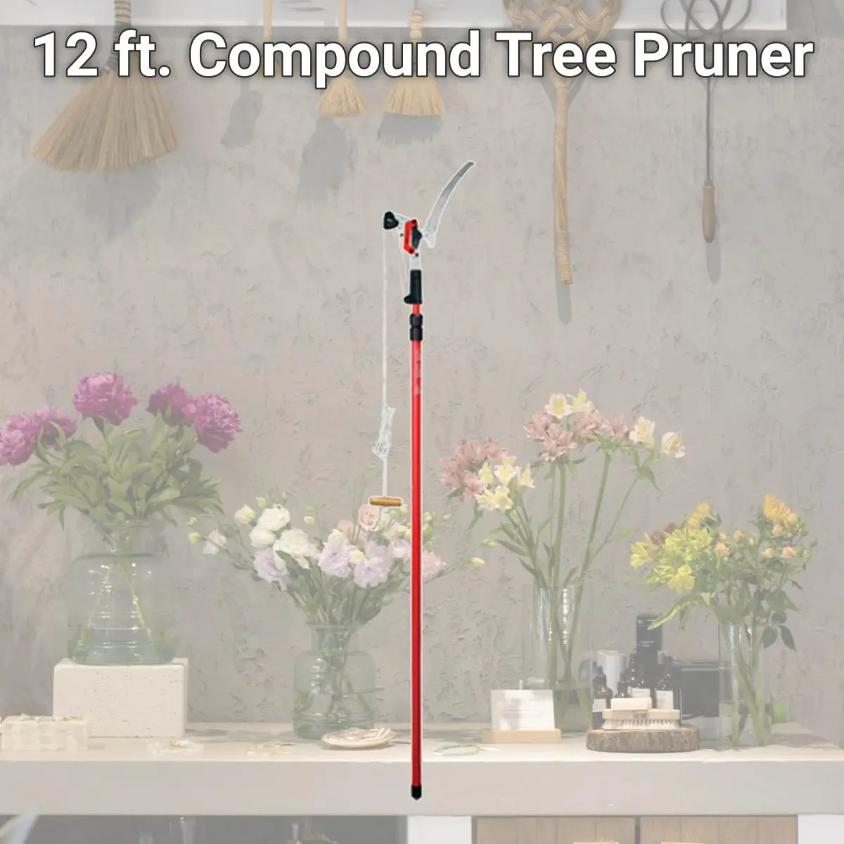 Features Compound action tree pruner. Power multiplier cutting system for easy trimming. Extendable fiberglass pole. Cutlery pruning blade with non-stick coating, curved. Conventional tooth saw blade. Inner pole stop for added safety. Specifications Size: 12 ft. . Weight: 5.2 lbs.