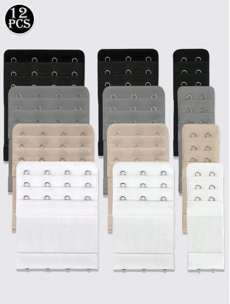 12pcs Bra Extender Strap with Elastic Adjustable Comfortable 2 3 4 Hooks for Various Bra Sizes