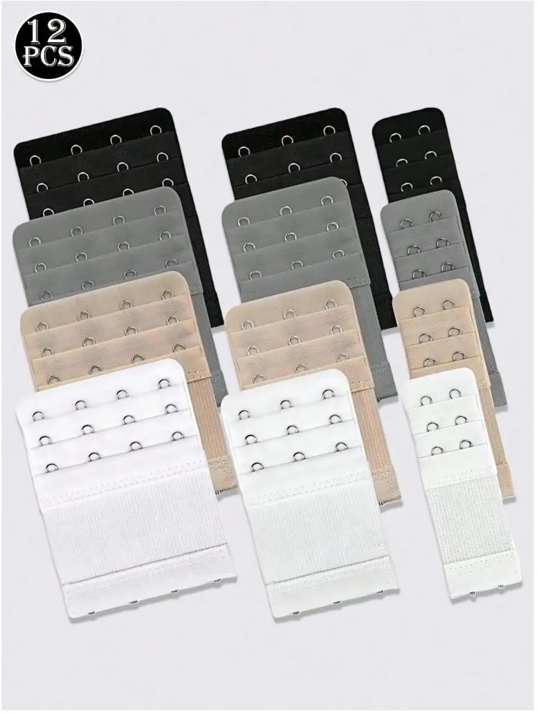 ✨ 12pcs Bra Extender Strap - This set includes 12 pieces of bra extenders, each with elastic for a comfortable fit. The extenders are adjustable, ensuring a perfect fit for your bra. They come with 2, 3, or 4 hooks, providing versatile options. Ideal for enhancing the comfort and fit of your bras.
