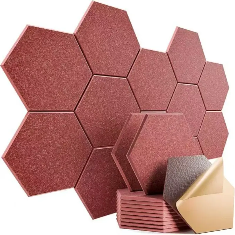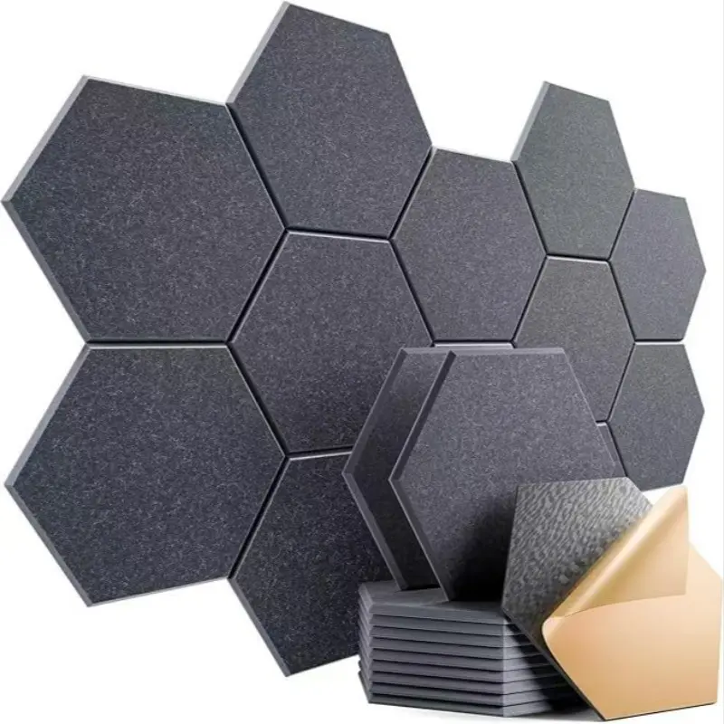 12pcs Hexagonal Self-Adhesive Sound Absorbing Panels, Indoor Noise Reduction Wall Decor, Thick Polyester Fiber, Living Room Decoration